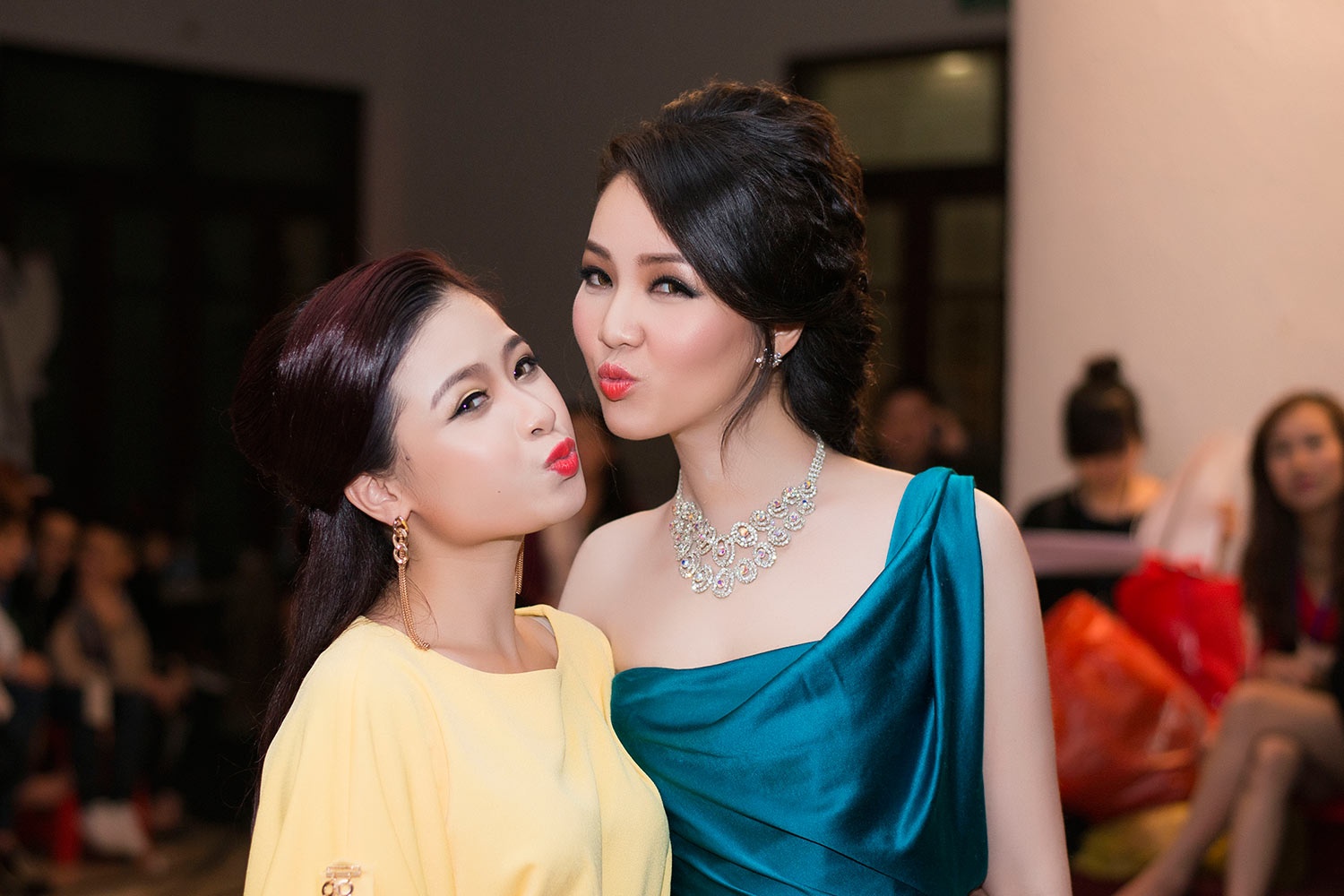 | Khoảnh khắc xì tin của Hoàng Yến và Á hậu Thụy Vân. Vì chương trình được tường thuật trực tiếp trên nhiều kênh truyền hình nên các nghệ sĩ có mặt từ khá sớm để chuẩn bị. |
