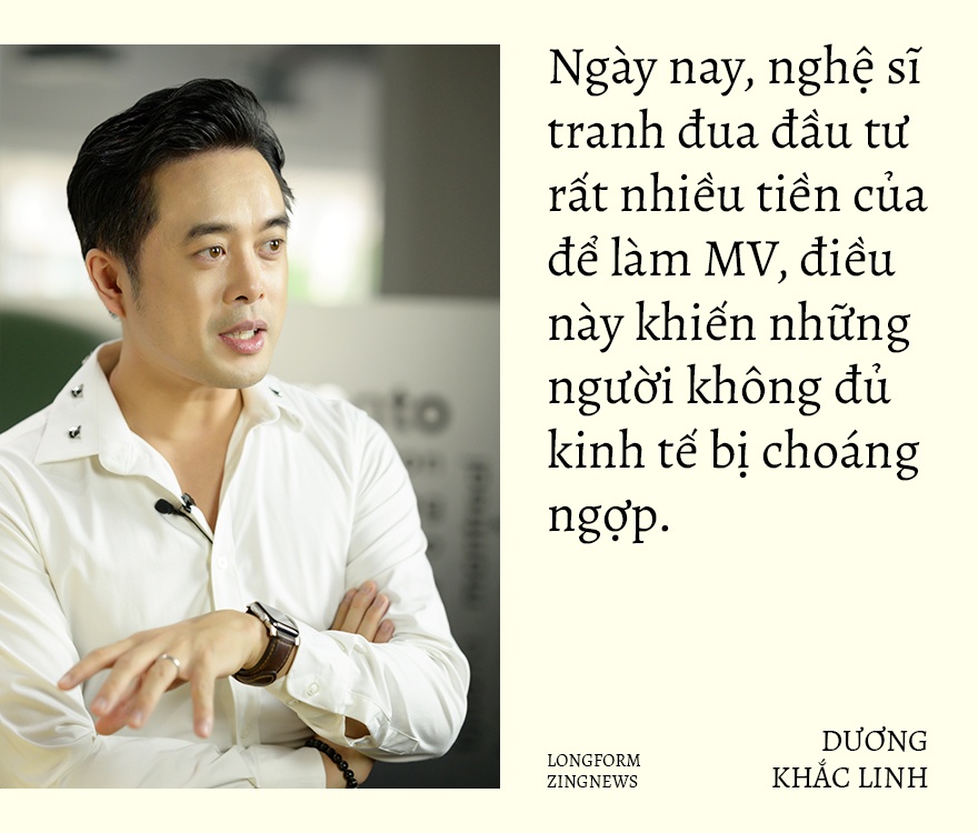 - Ngày nay, nghệ sĩ tranh đua đầu tư rất nhiều tiền của để làm MV, điều này khiến những người không đủ kinh tế bị choáng ngợp. Nhưng tôi thấy không thiếu gì những bài hát chẳng có MV vẫn sở hữu hàng triệu lượt xem, cơ bản vì sản phẩm đó có chất lượng và chạm đến trái tim người nghe.