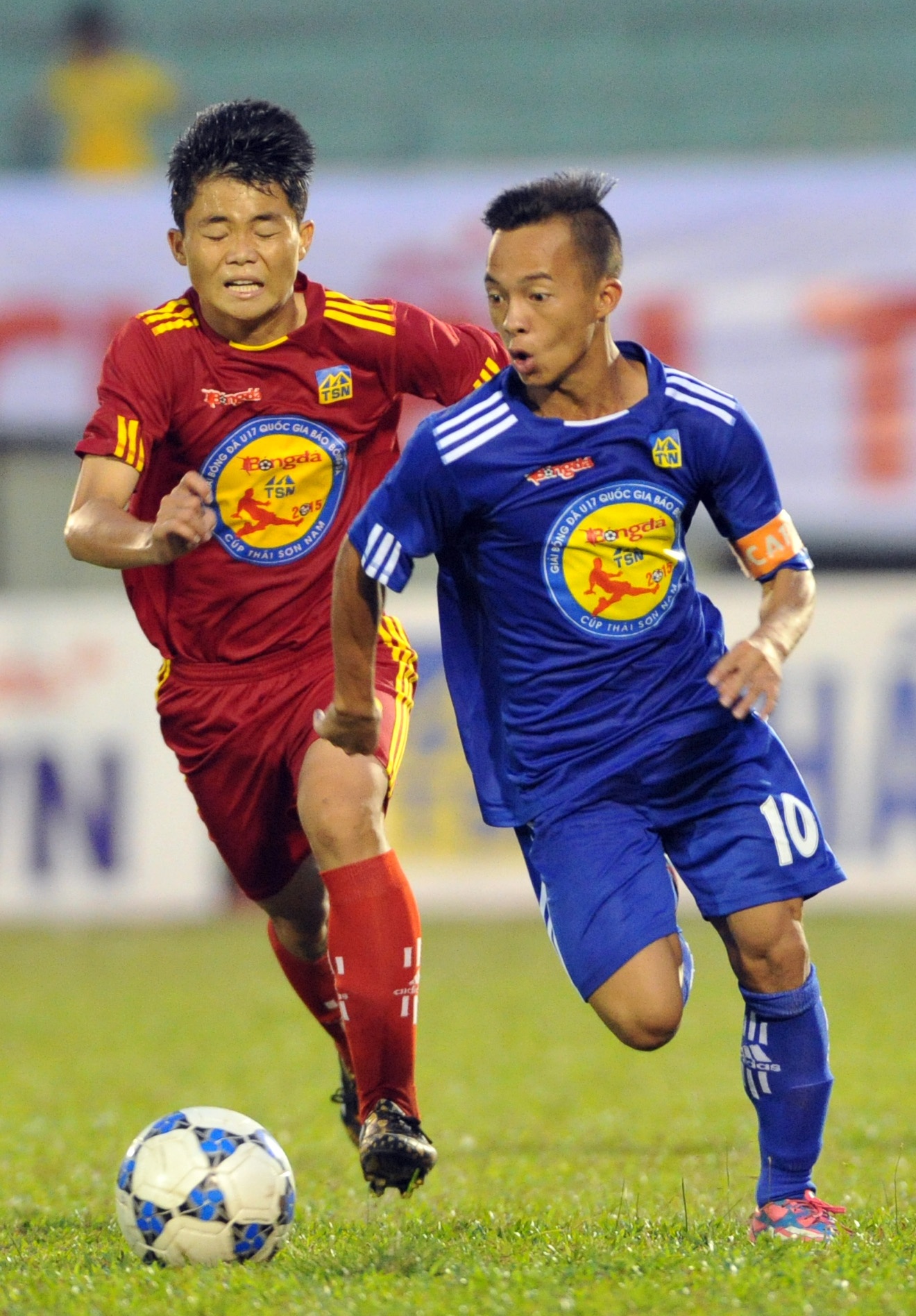 | Đội bóng của HLV Nguyên Chương chỉ ghi bàn dẫn trước nhờ cú sút xa đẹp mắt của tiền vệ Phạm Trọng Hóa ở phút 32. Bóng đi vào góc cao khiến thủ môn Quảng Ngãi không thể cản phá. |