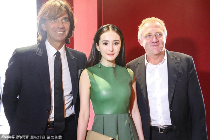 | Dương Mịch chụp ảnh cùng giám đốc điều hành Gucci Patrizio di Marco (trái). |