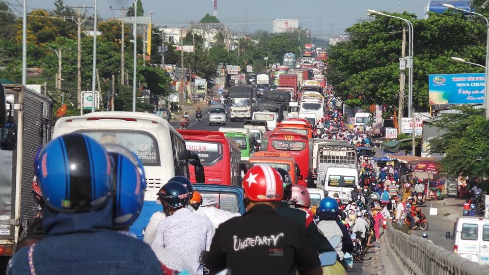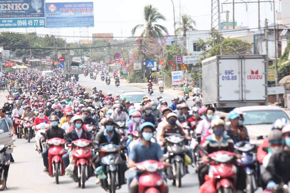 Theo ghi nhận, từ sáng sớm mùng 7 Tết (14/2), hàng trăm nghìn xe máy cùng đổ ra quốc lộ 1A để đi TP HCM cho kịp ngày làm việc đầu năm mới.