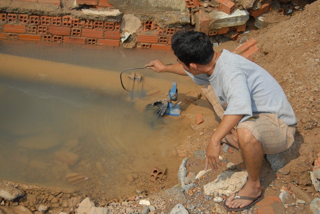 Một số người dân đã báo cho các đơn vị liên quan. Tuy nhiên, đến 6h, lực lượng chức năng mới có mặt tại hiện trường để ngắt nguồn nước và tiến hành các biện pháp kiểm tra. Tại nơi ống bị bể, do nước chảy mạnh nên mặt đường lún thành một hố sâu gần 1 m.