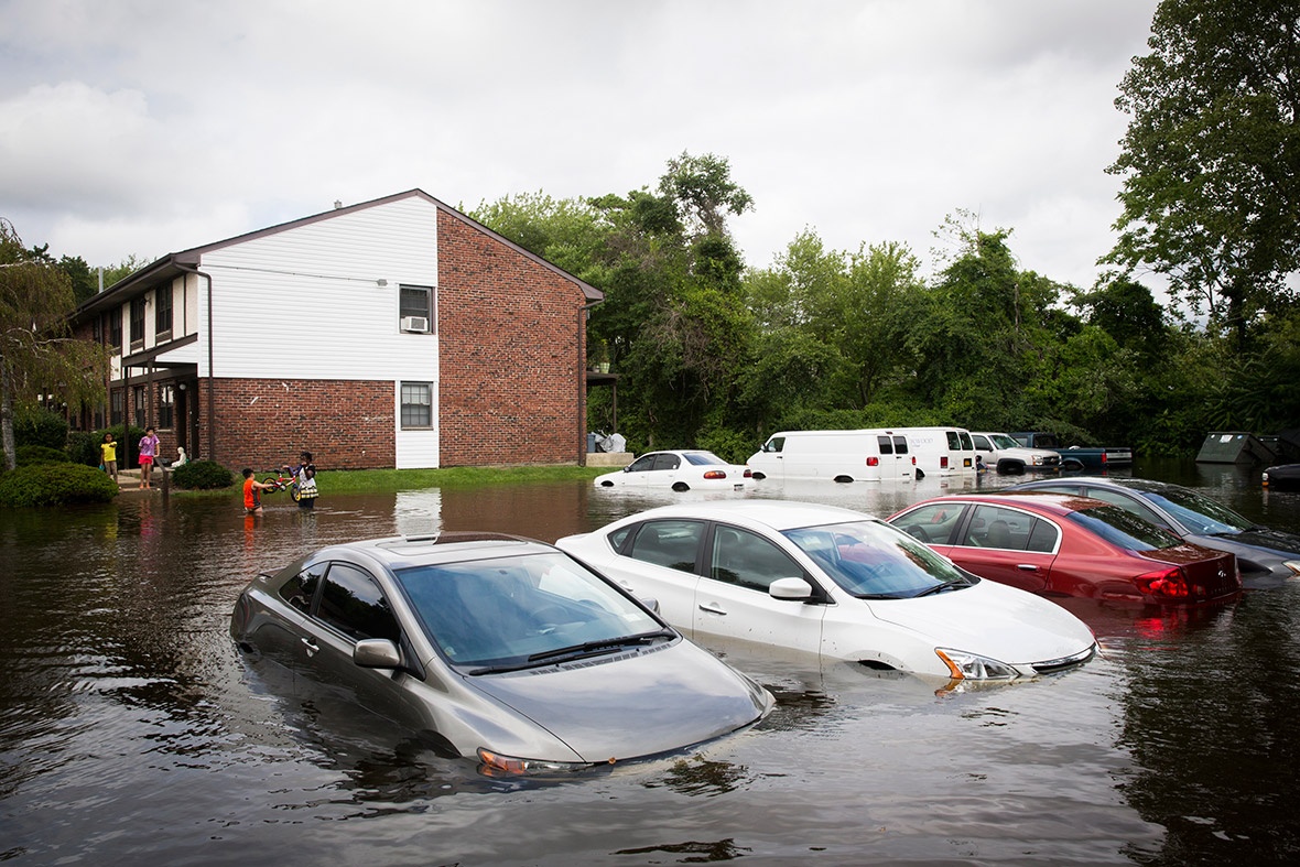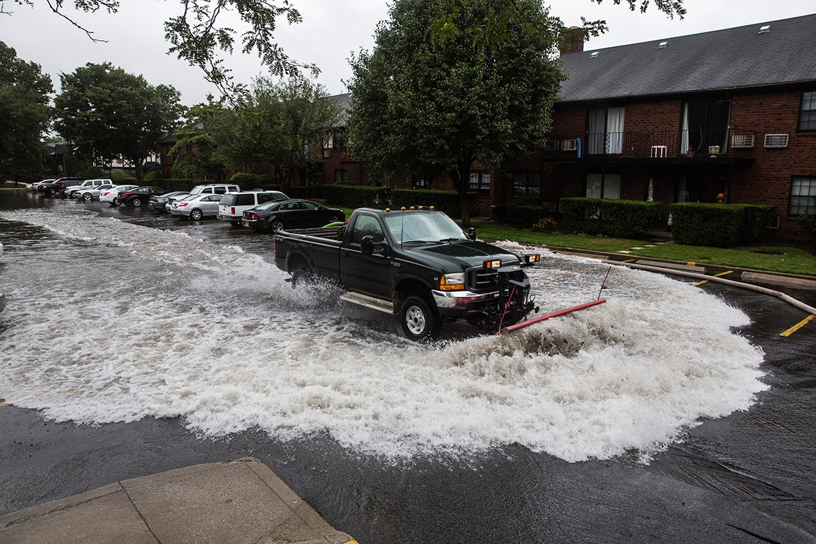Một chiếc xe sử dụng hệ thống gạt nước đặc biệt tại bãi đỗ xe ở Bắc Babylon, đảo Long, New York, Mỹ. Ảnh: Reuters |