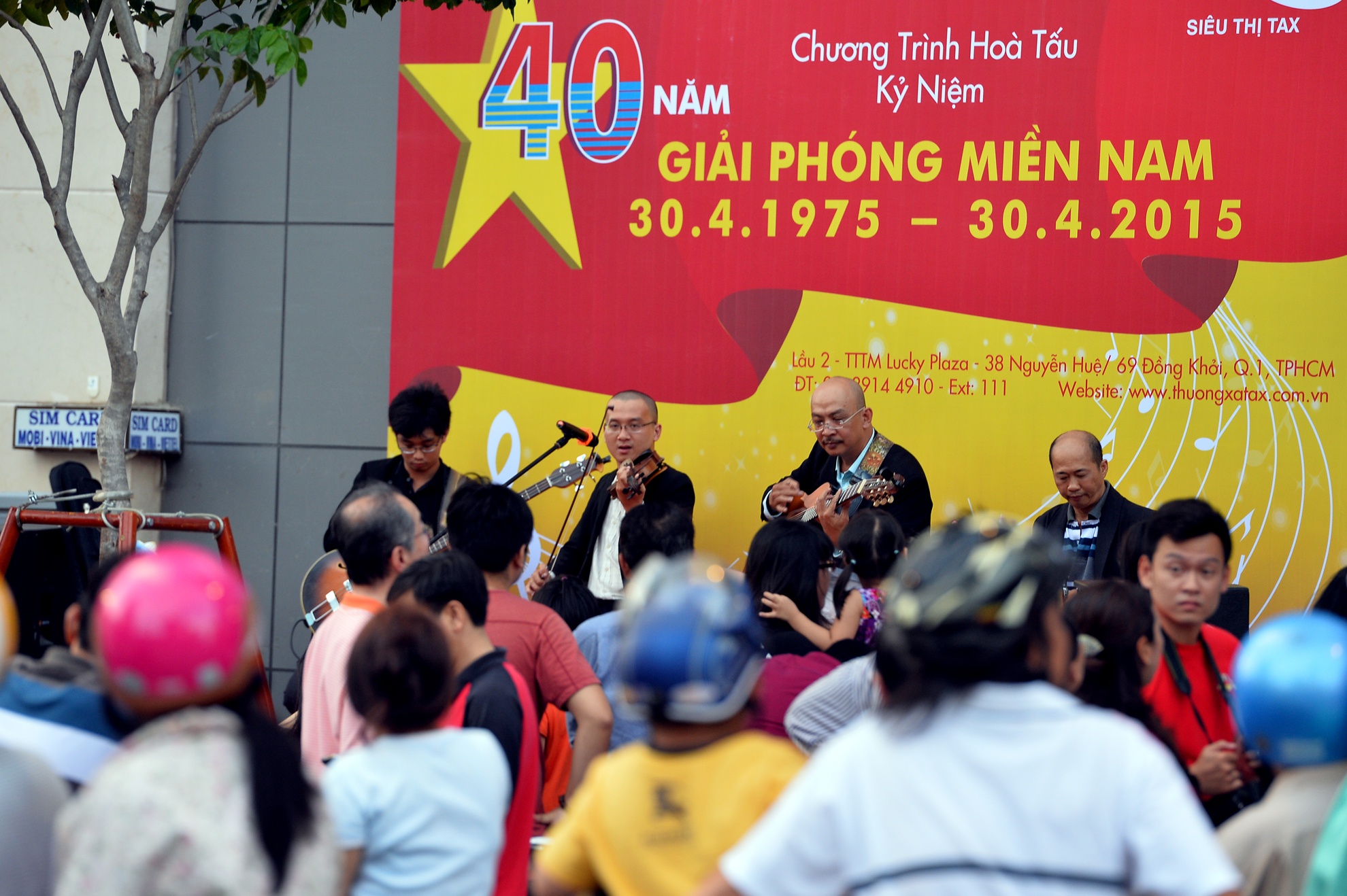 Nhiều đơn vị, doanh nghiệp tổ chức văn nghệ chào mừng 30/4 trong đó có cả biểu diễn âm nhạc hòa tấu đường phố.