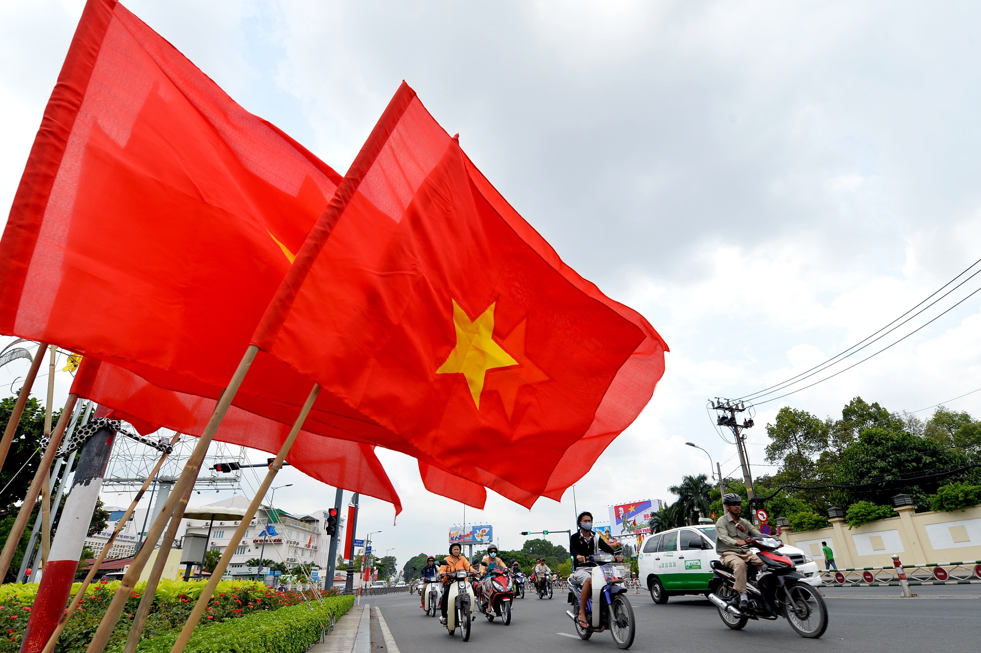 | Cờ phục vụ người dân cắm trên nhiều tuyến đường trung tâm thành phố. |
