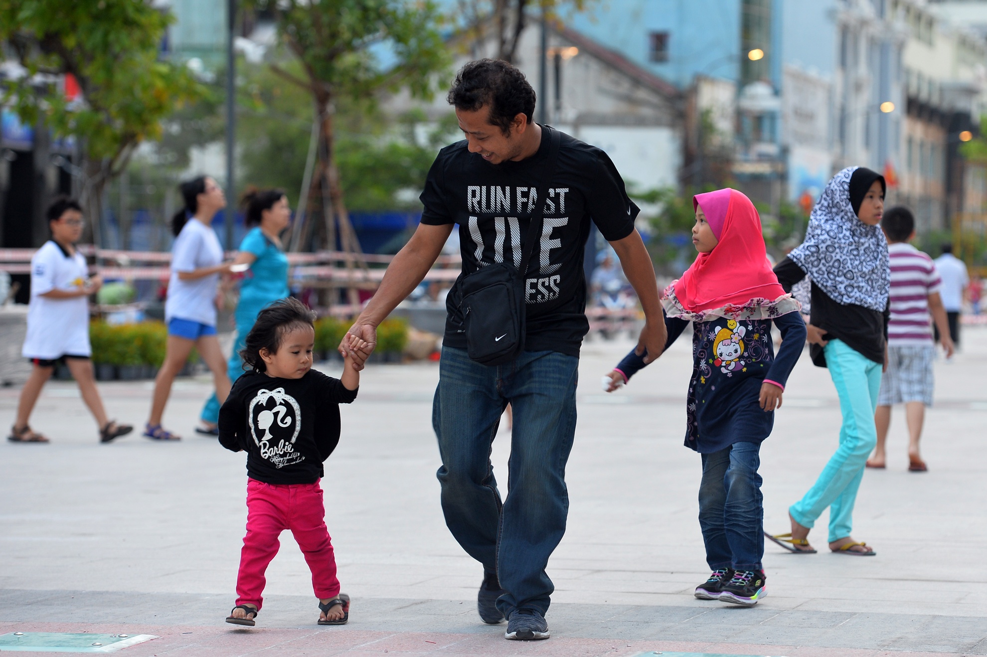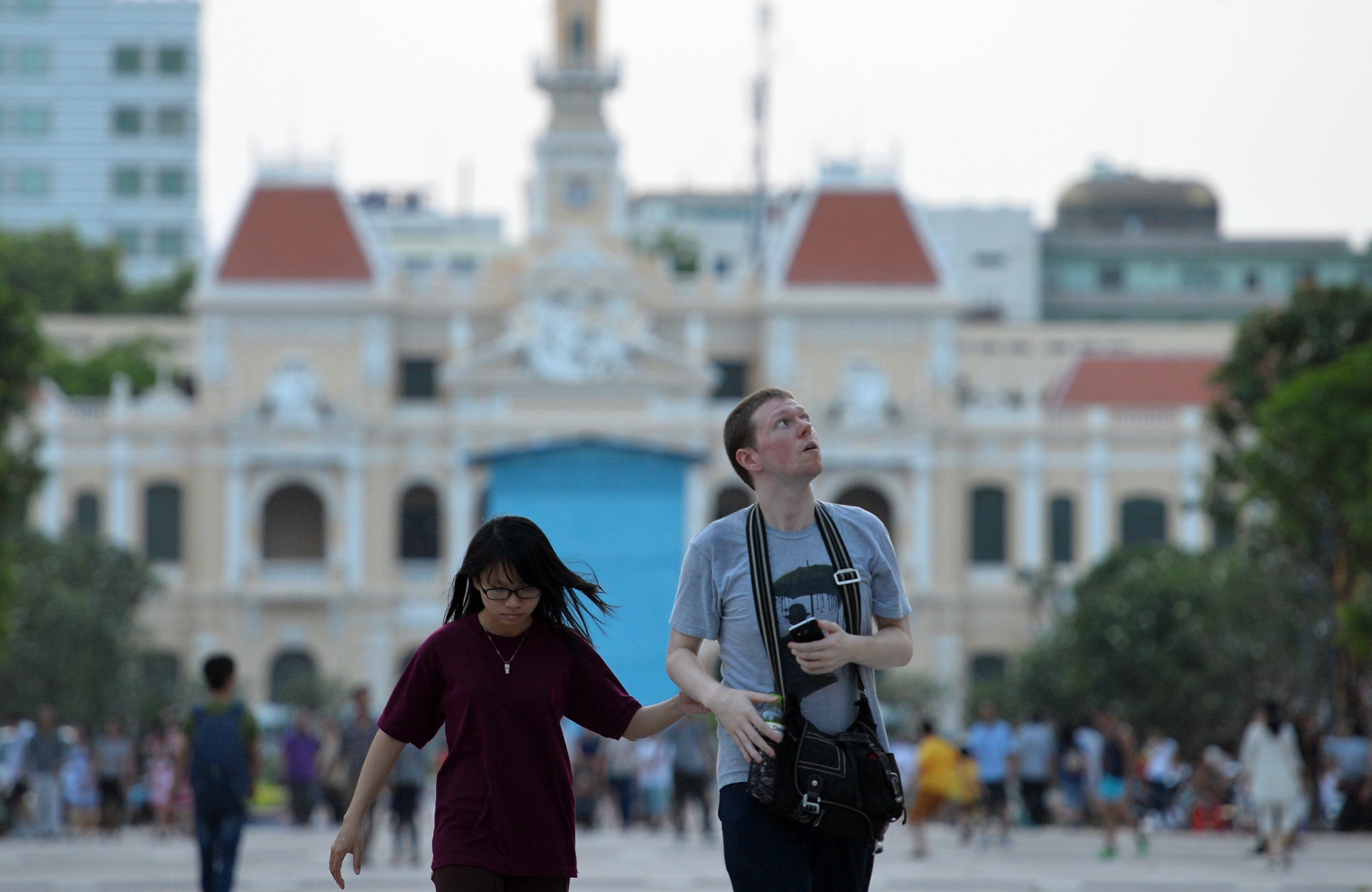 Người đàn ông đến từ Malaysia đưa các con gái của mình dạo vòng quanh Sài Gòn.