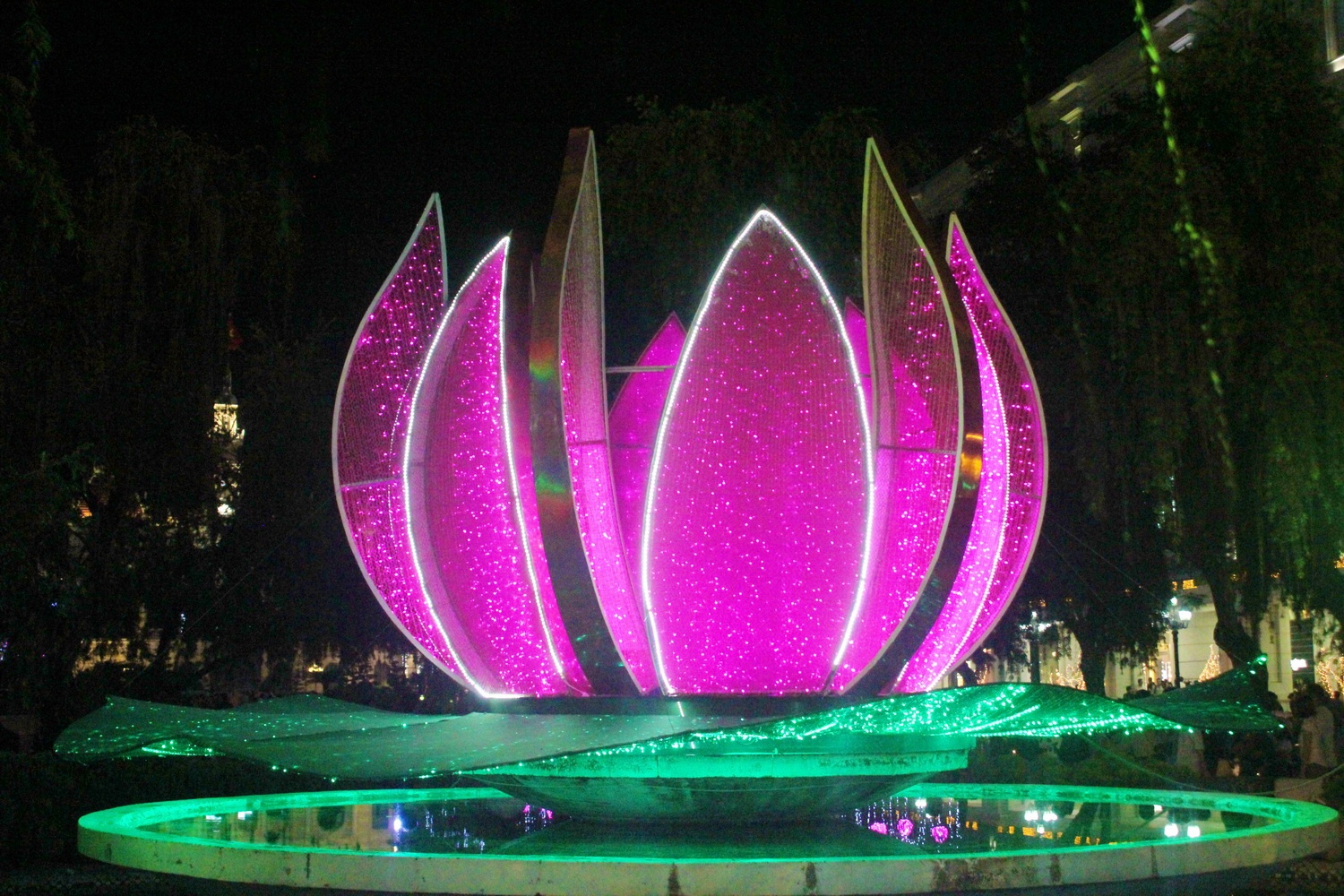 Một bông sen khổng lồ giữa đài phun nước trên giao lộ Lê Lợi-Nguyễn Huệ.