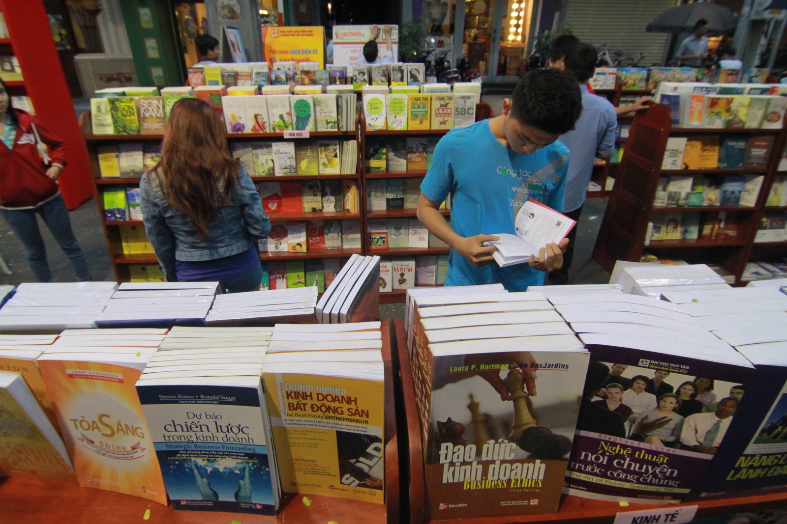 Lê hội đường sách chưa khai mạc nhưng đã có nhiều người dân thành phố tìm đến tham quan.