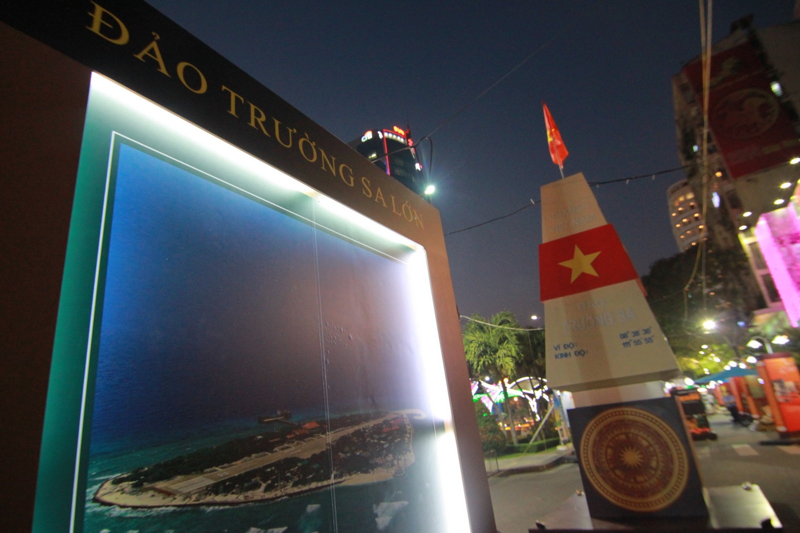 Khu sách mang chủ đề Sách với chủ quyền đất nước ngay giữa trung tâm gây ấn tượng với những mô hình về Trường Sa, biển đảo đất nước với các sách chủ quyền biên giới, hải đảo của đất nước với những tư liệu, hình ảnh ghi nhận bằng chứng lịch sử Hoàng Sa, Trường Sa là của Việt Nam.