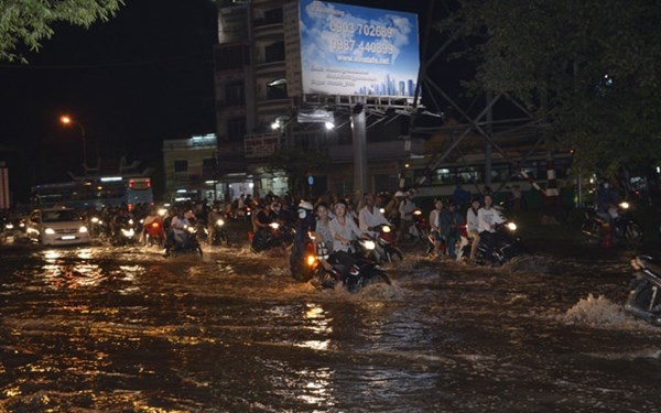 Đường Sài Gòn biến thành sông, giao thông rối loạn