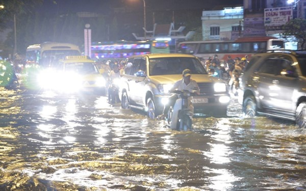 Cơn mưa lớn kéo dài hơn 3 giờ đồng hồ cuối chiều 6/9 khiến hàng loạt tuyến đường của TP.HCM bị ngập nặng. Giao thông tại nhiều điểm bị rối loạn.