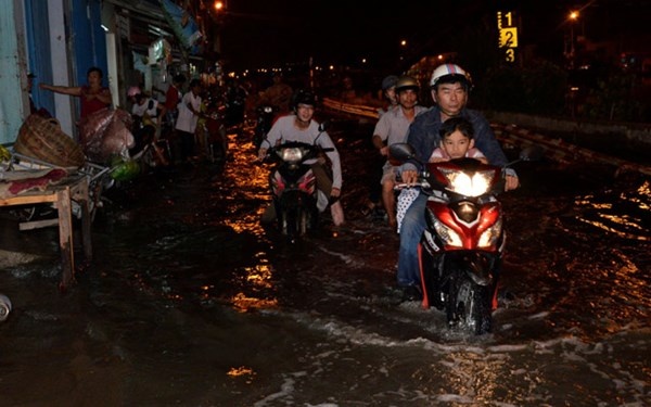 | Trên QL13 do không có hệ thống thoát nước nên có nhiều đoạn đường bị ngập sâu. Nhiều khu dân cư dọc theo quốc lộ này chìm trong nước khiến nhiều người dân phải bì bõm lội. Còn đường Phạm Văn Đồng có nhiều đoạn cũng bị ngập, nhiều người chạy xe gắn máy phải lưu thông vào làn đường dành cho ôtô. |