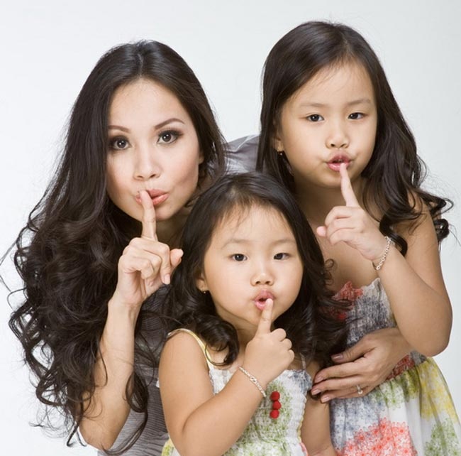 | Vợ chồng Cẩm Ly rất ít khi chia sẻ hình ảnh của con cái với giới truyền thông. Mới đây, Cẩm Ly quyết định mang hai con lên sân khấu diễn cùng khiến người hâm mộ thích thú. Hai cô công chúa của Cẩm Ly tên là Cẩm Uyên và Cẩm Anh, tên thường gọi ở nhà là bé Thỏ và bé La. Bé Thỏ năm nay gần 9 tuổi, còn bé La vừa tròn 6 tuổi. Cả hai đều thông minh và ngoan ngoãn. |
