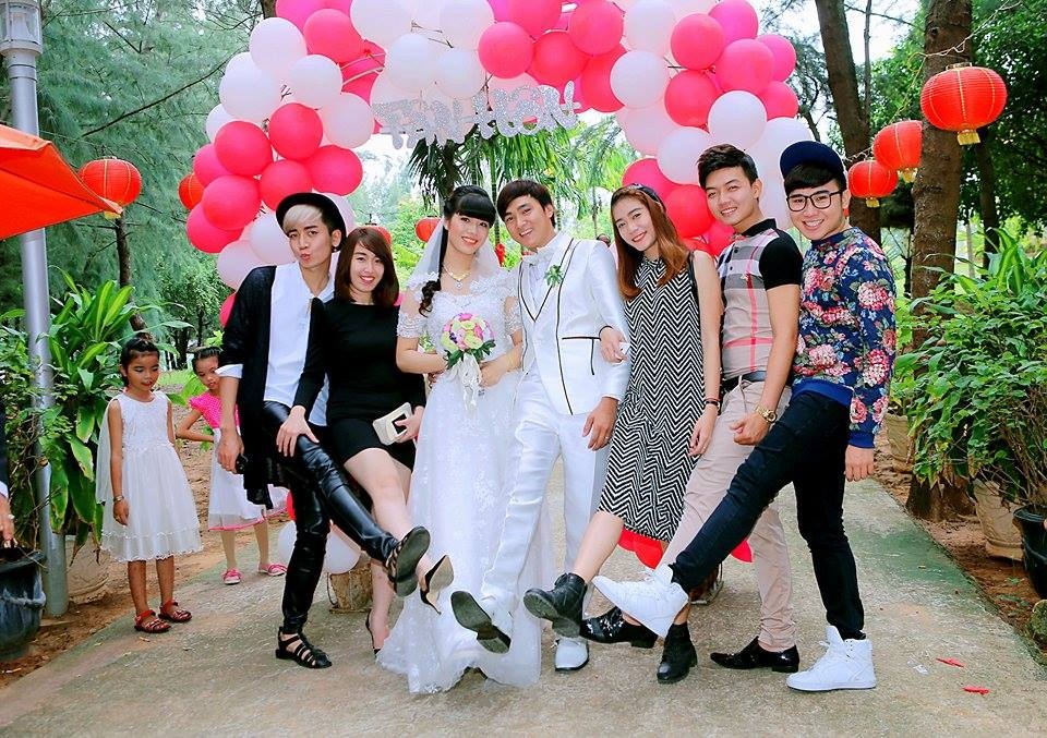 | Đám cưới diễn ra tại quê nhà anh với sự có mặt của đông đủ thành viên nhóm BB&BG. |