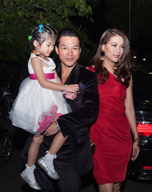 Gia đình nhỏ của Trần Bảo Sơn trong buổi ra mắt phim Âm mưu giày gót nhọn hồi tháng 10/2013.