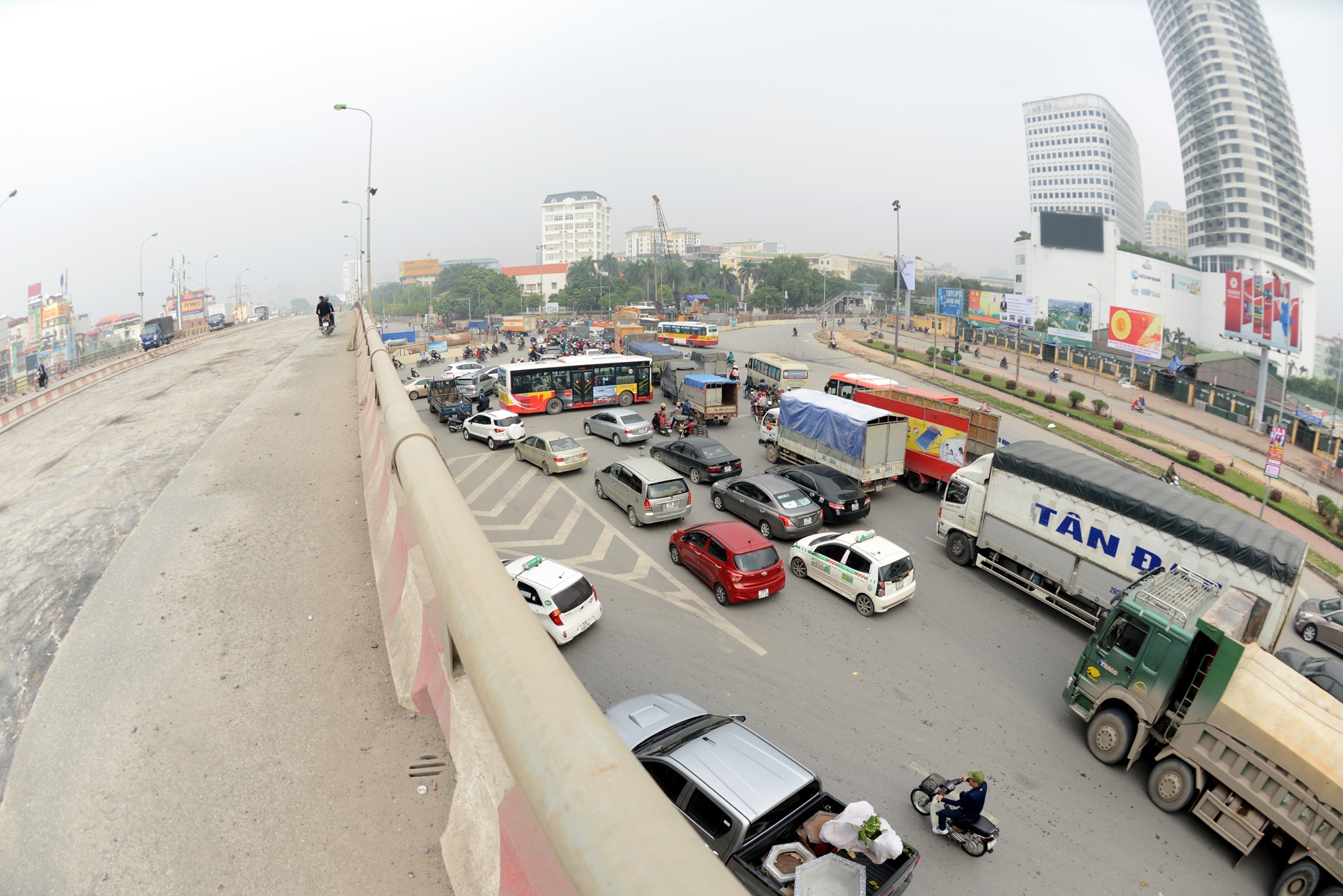 | Thời điểm 12h00 nơi đầu cầu vượt mai Dịch, các phương tiện gần như đứng im tại chỗ. |