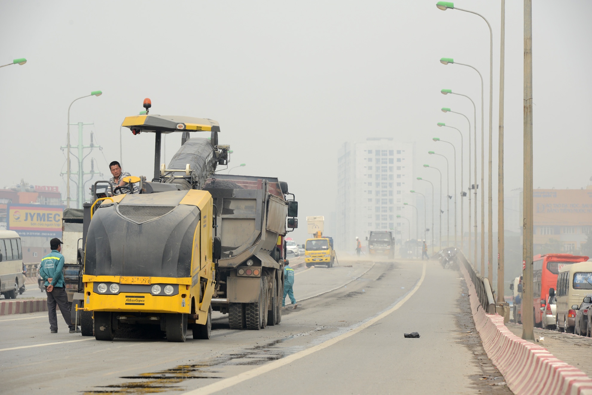 | Dự kiến sáng 14/12 mặt cầu Mai Dịch này mới hoàn thành việc tu sửa, rải lại thảm nhựa. |
