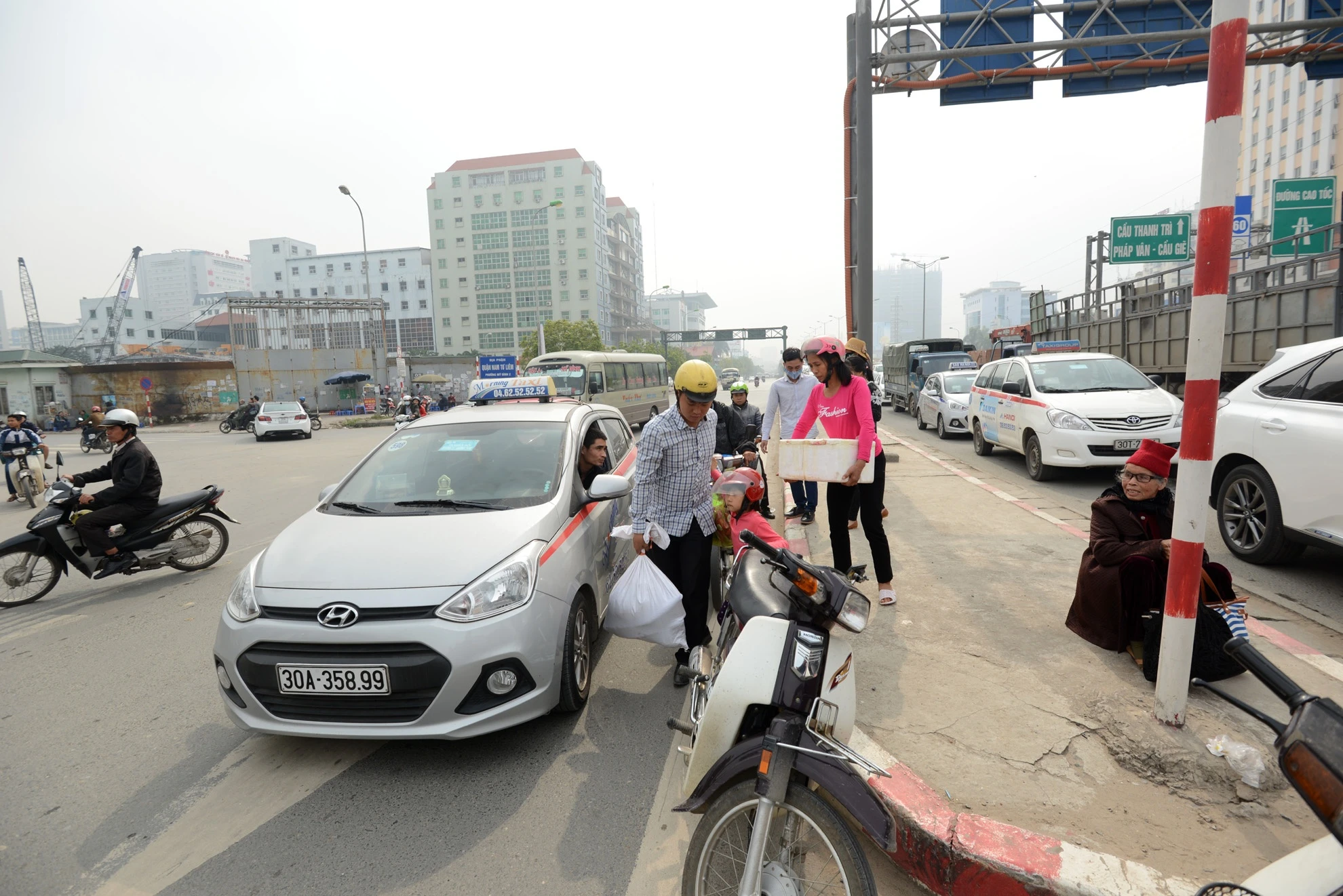 | Tình trạng giao thông hỗn loạn diễn ra khi hành khách không kiên trì đi đến bến xe Mỹ Đình mà xuống xe ngay nơi kết thúc của đường trên cao. |
