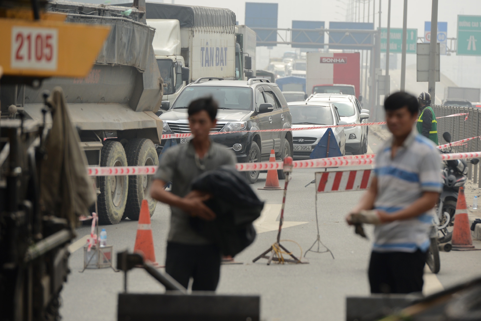 | Từ đêm 11/12 mặt cầu vượt Mai Dịch (chiều vành đai 3 đi Phạm Văn Đồng) bị ngăn lại hoàn toàn để tiến hành tu sửa mặt cầu. |
