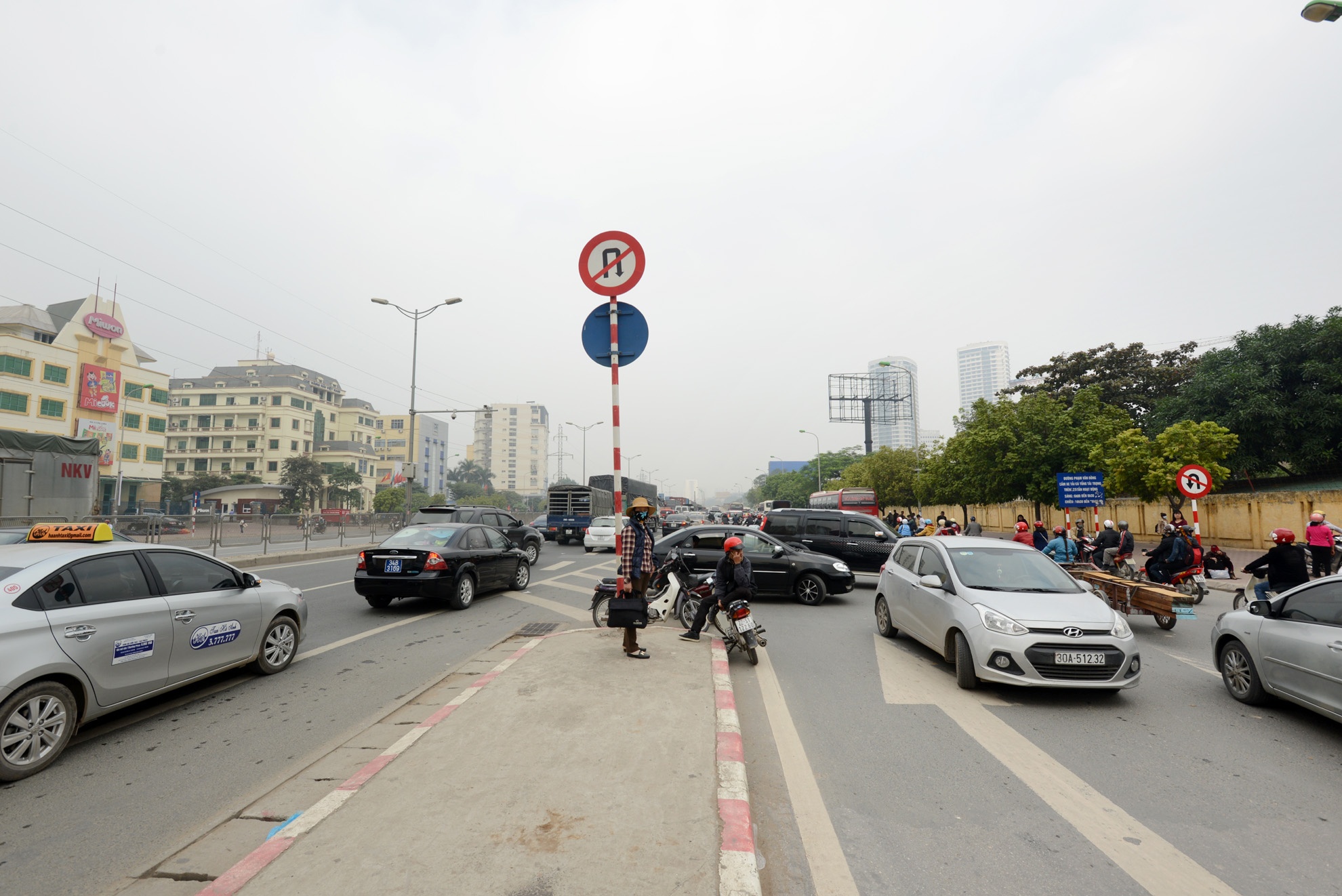 | Các phương tiện quay đầu vào ngõ 7 đường Phạm Hùng, cho dù có biển báo cấm quay đầu ở khu vực này. |