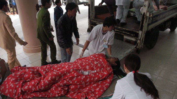 | Chiều nay, 20 bệnh nhân bị thương nặng đang được chuyển lên tuyến trên điều trị. Ảnh: Tuối Trẻ. |