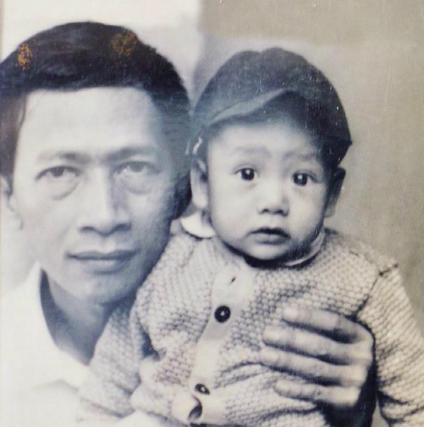 | Ảnh chụp với bố ngày Duy Mạnh tròn một tuổi - 22/5/1976. Anh là con út trong gia đình có bốn anh em trai. |