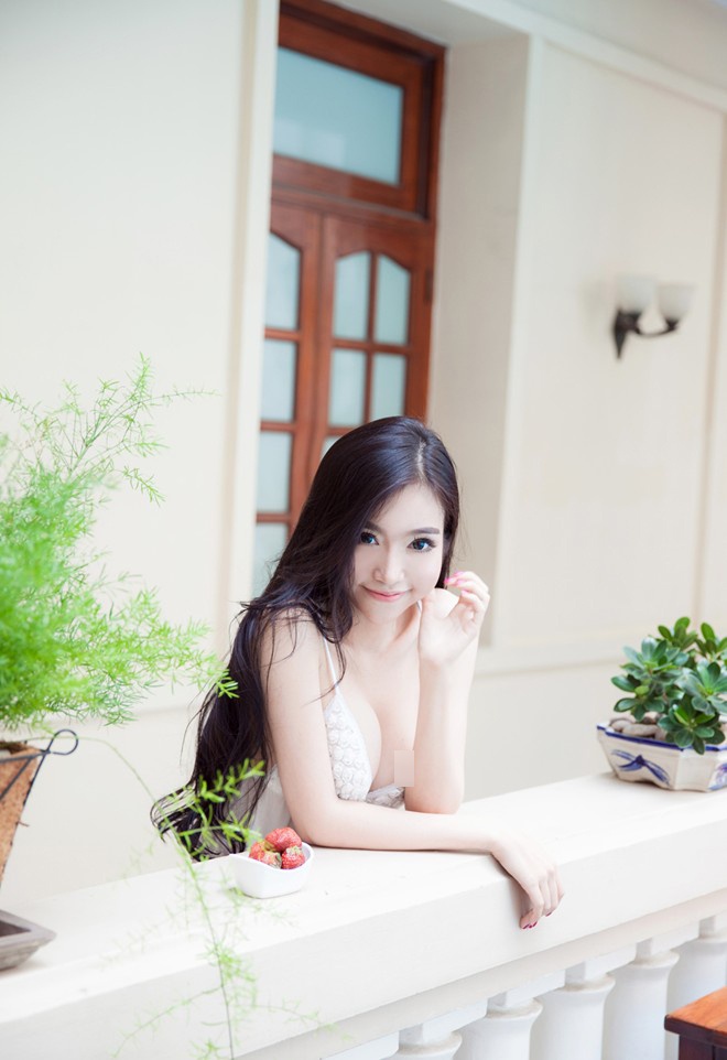 | Trong loạt ảnh sexy này, người đẹp siêu vòng một đã có một tư thế hớ hênh để lộ nhũ hoa ở bức ảnh này.