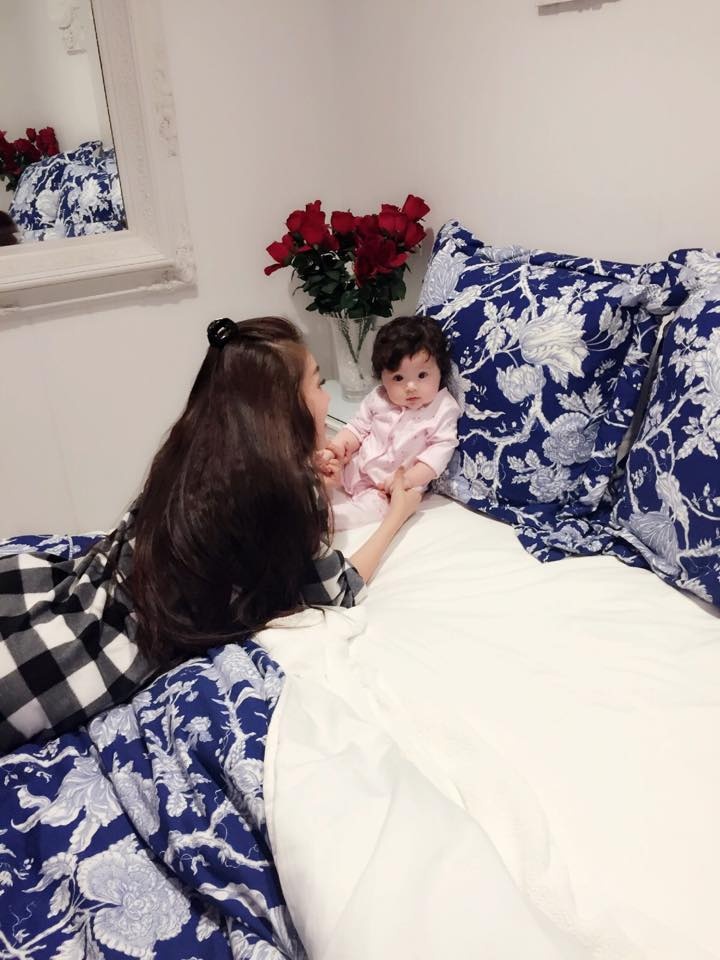 | Trở lại sau khi sinh, dù khá bận rộn với lịch làm việc nhưng hot girl sinh năm 1987 thường xuyên dành thời gian chơi đùa, chụp hình, quay clip về con để làm kỷ niệm. |
