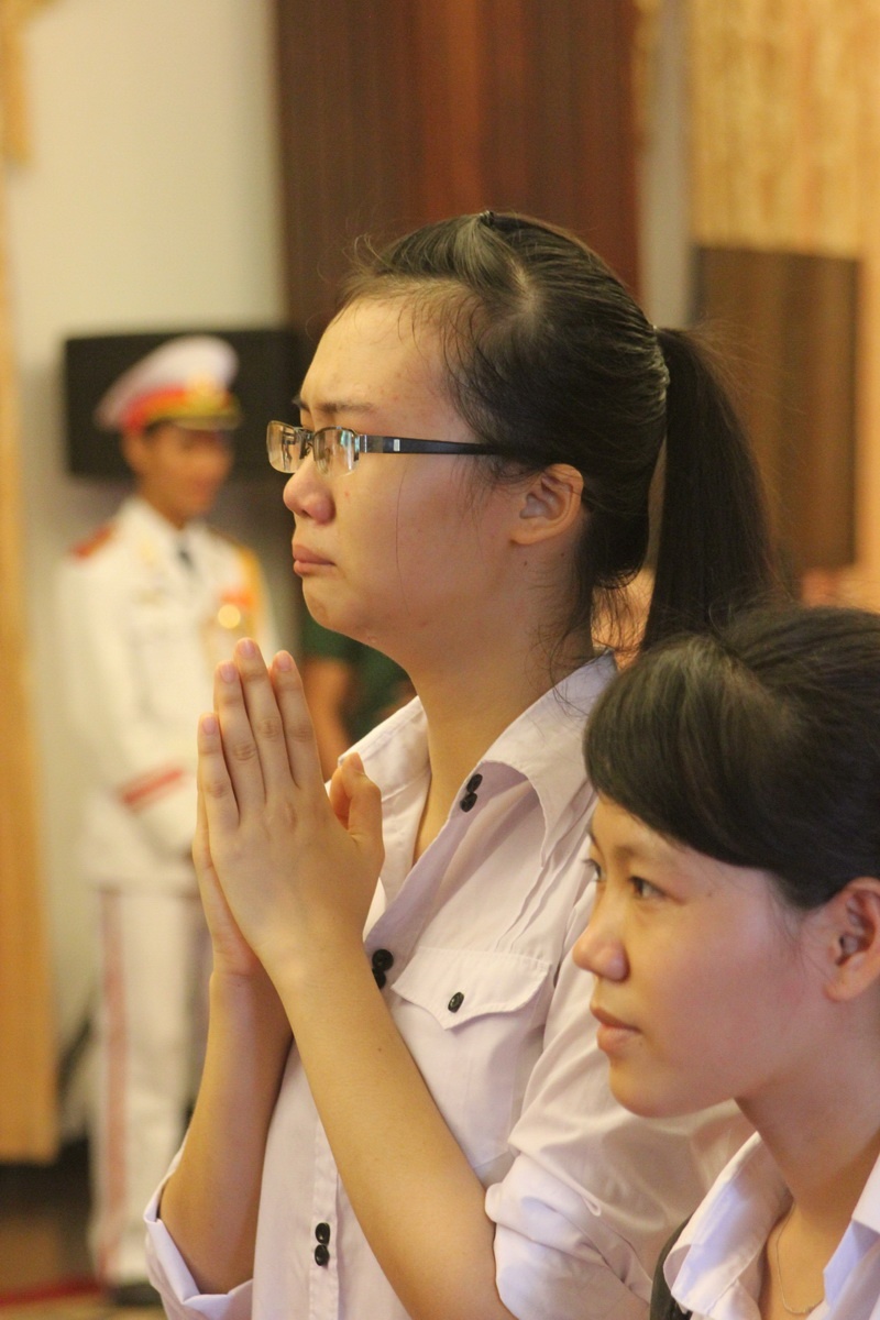 | Nhiều bạn trẻ Sài Gòn gần trưa tới viếng Đại tướng, họ đều không thể kìm nén xúc động. |