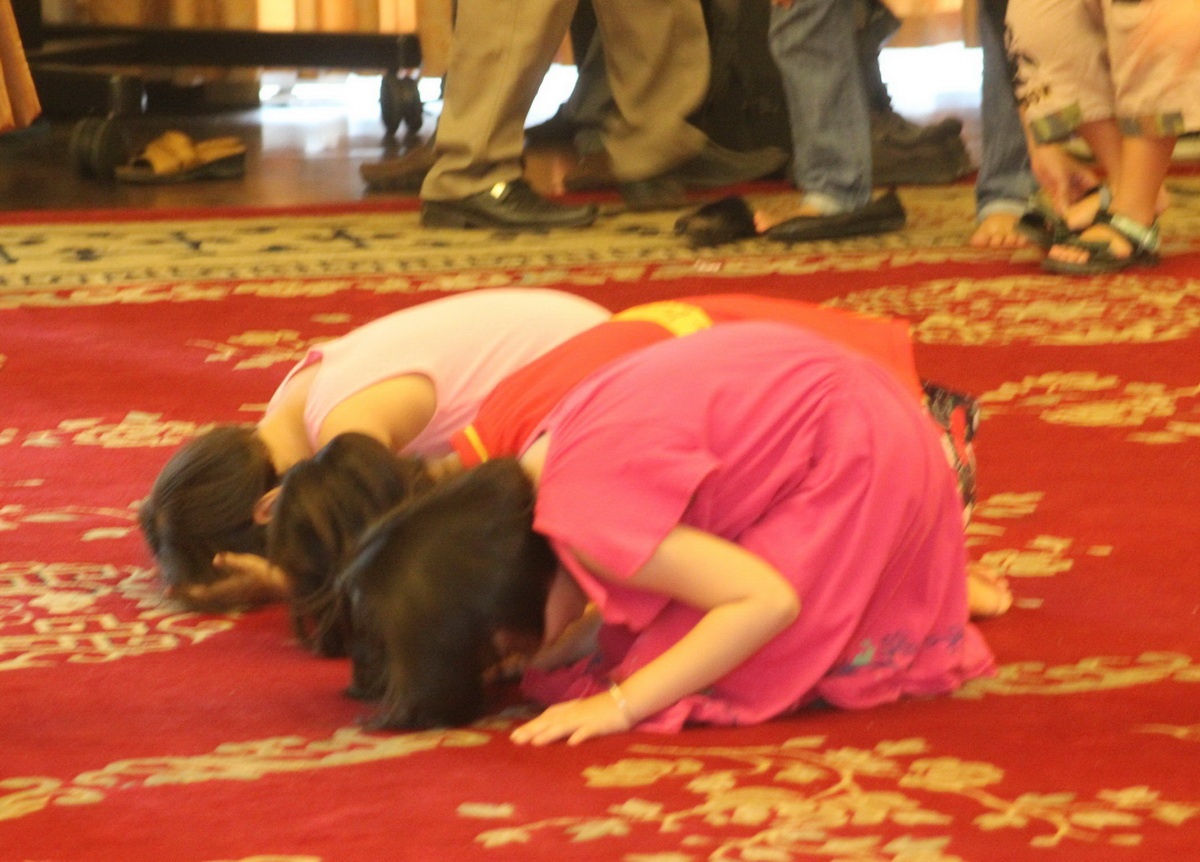 | 3 bé gái này còn nhỏ nhưng rất thành tâm khi quỳ lạy trước bàn thờ Đại tướng. |