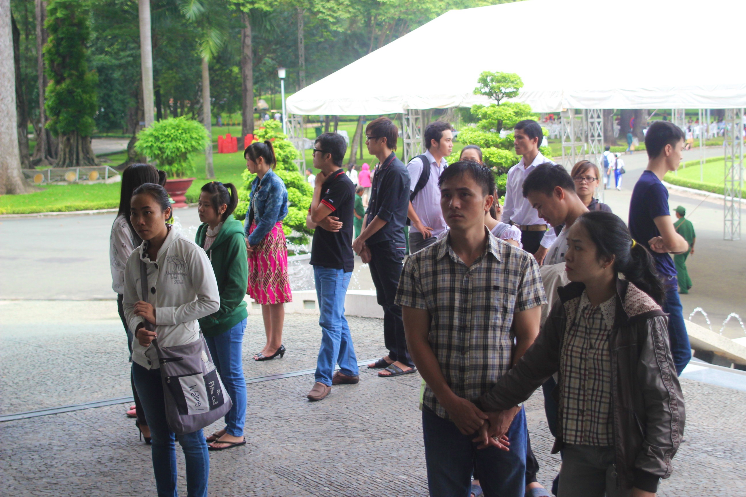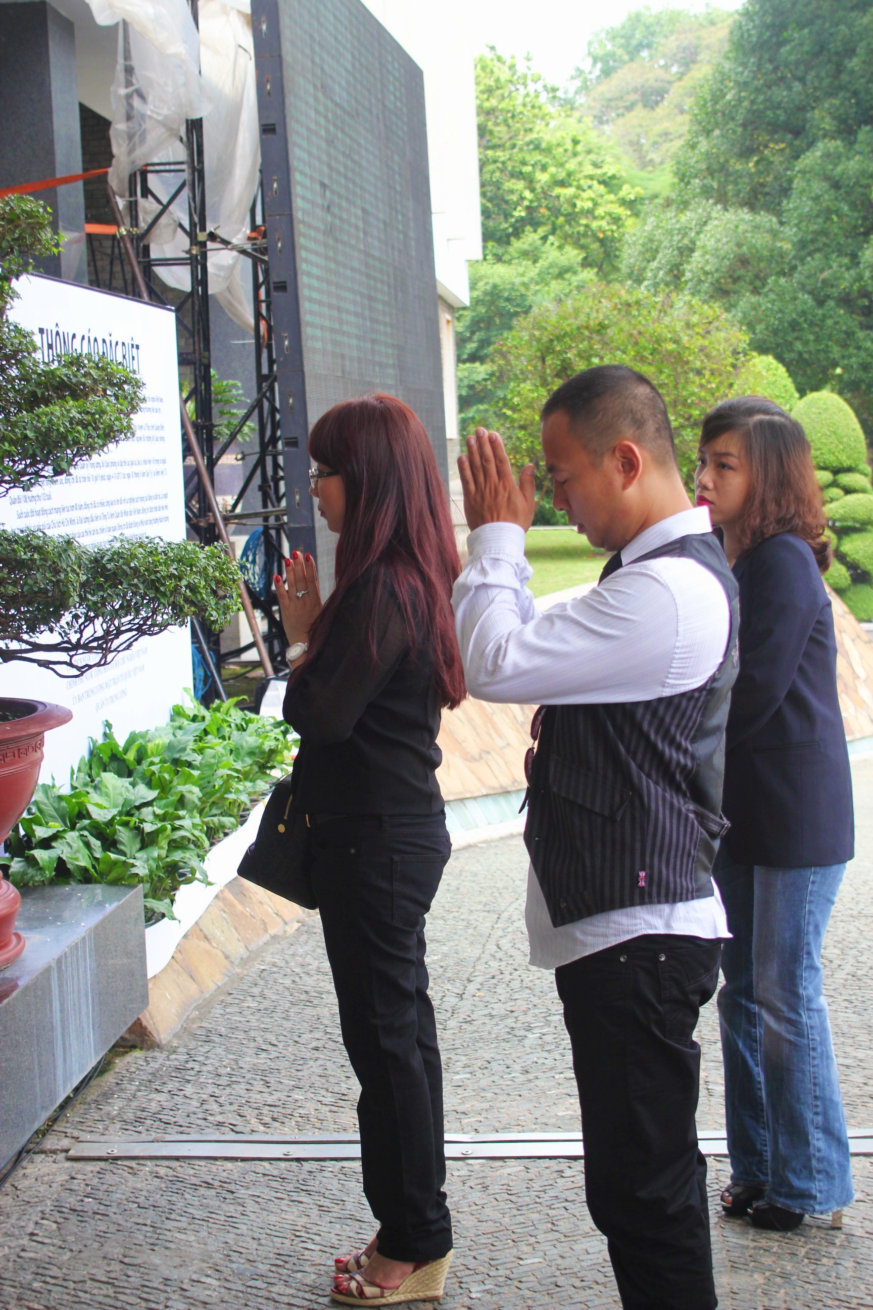 | Anh Tam Alesson (Việt kiều Thụy Điển) vừa xuống sân bay Tân Sơn Nhất là tới hội trường Thống Nhất để viếng nhưng vẫn không kịp giờ nên đành đứng bên ngoài vái lạy Người. |