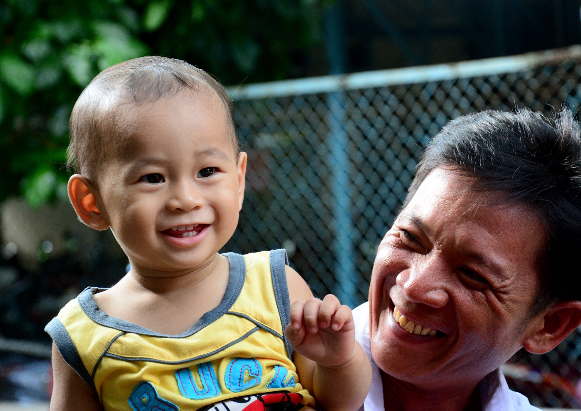 Huy đã được 11 tháng tuổi, cân nặng 9 kg và hoàn toàn khỏe mạnh