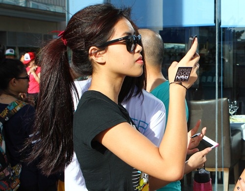 | Tuy nhiên cô nàng vẫn thoải mái và không có ý định né tránh khi phóng viên yêu cầu tạo dáng. |