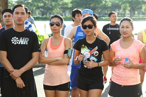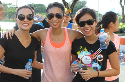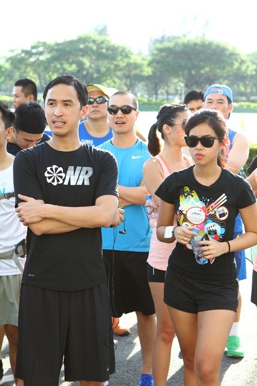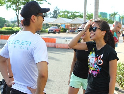 | Thảo Tiên bên cạnh anh trai Louis Nguyễn. Cả hai anh em cùng tham gia chạy bộ ở cự ly 3 km. |