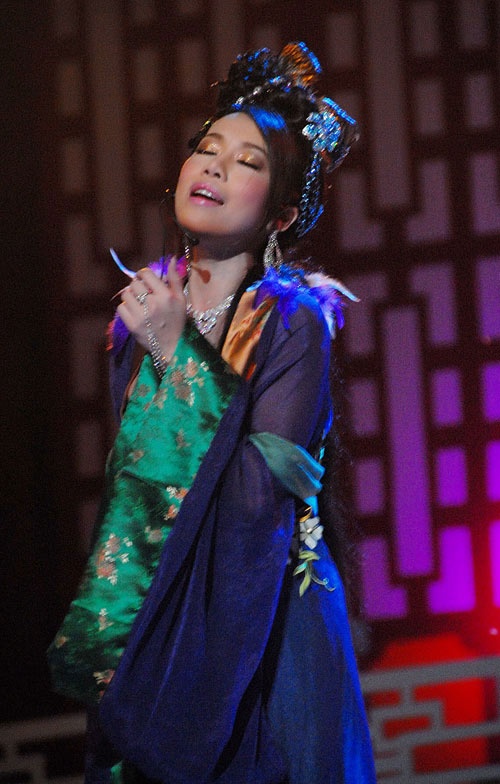 | Nữ ca sĩ xuất hiện trong liveshow mới đây của anh trai Hoài Linh. |