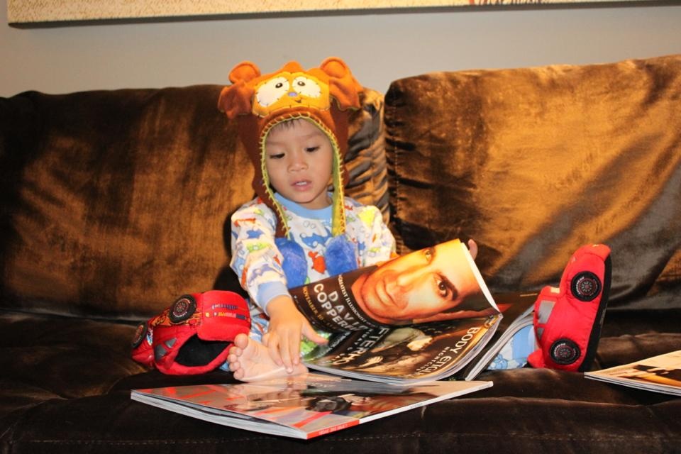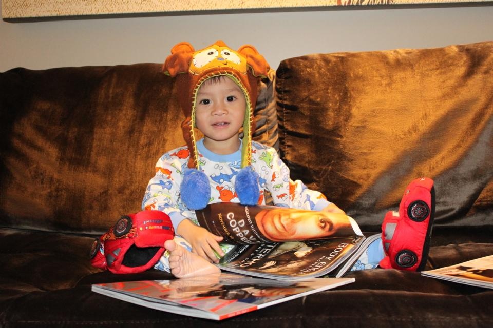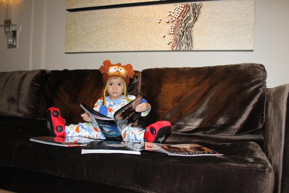Cậu nhóc được hai mẹ sắm cho rất nhiều đồ chơi. Trong đó, cậu nhóc đặc biệt thích thú với đôi giày đi trong nhà mô phỏng nhân vật của bộ phim hoạt hình Cars nổi tiếng. Cứ về tới nhà là cậu nhóc đòi xỏ chân vào đôi giày đặc biệt này và nhất định không chịu cởi ra cho tới khi mẹ yêu cầu lên giường ngủ.