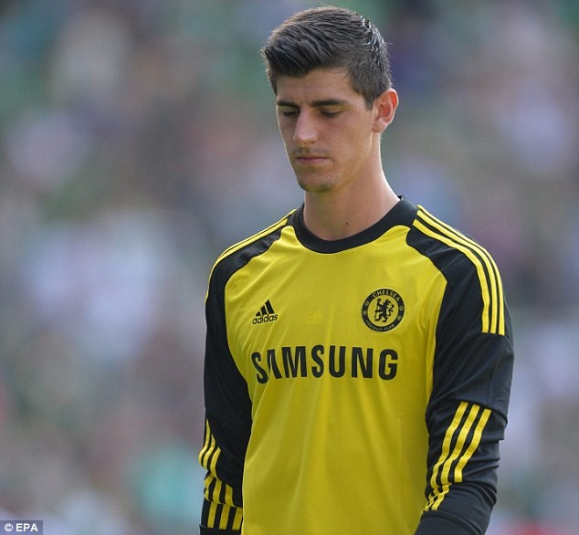 | Nỗi buồn của thủ thành Courtois sau khi 45 phút đầu tiên khép lại. |