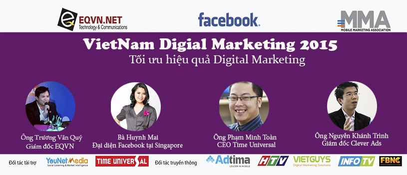 Do đó, EQVN phối hợp với Facebook, MMA tổ chức hội thảo VietNam Digital Marketing 2015 với chủ đề Tối ưu hiệu quả Digital Marketing giúp doanh nghiệp biết cách theo dõi, phân tích báo cáo và tối ưu hiệu quả các kênh truyền thông Facebook, Google, mobile và hoạt động digital marketing tổng thể. Đây là một chìa khóa quan trọng cho các nhà marketing trong doanh nghiệp hiện nay.