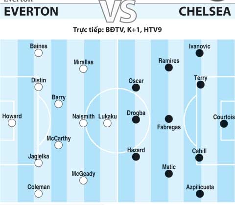 Chelsea luôn gặp rất nhiều khó khăn trước những đội bóng có hàng tiền vệ giàu thể lực và được tổ chức tốt như Everton. Cuộc chiến tối nay nhiều khả năng sẽ không có ngoại lệ. Chấn thương của Steven Pienaar sẽ không ảnh hưởng nhiều đến Everton bởi Kevin Mirallas đã lấy lại 100% thể lực và sẵn sàng đá chính trận đầu tiên từ đầu mùa.