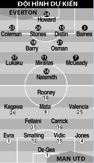 Càng phiền hơn cho Everton khi họ tiếp tục bị Quỷ đỏ dẫn trước về một yếu tố khác: Thể lực. Man United vừa có tới 11 ngày nghỉ ngơi trọn vẹn, và như vậy là đủ để HLV David Moyes chào đón những sự trở lại quan trọng. Wayne Rooney đã bình phục để sẵn sàng trừng phạt đối thủ ưa thích Everton. Fellaini cũng xuống khỏi gường bệnh.