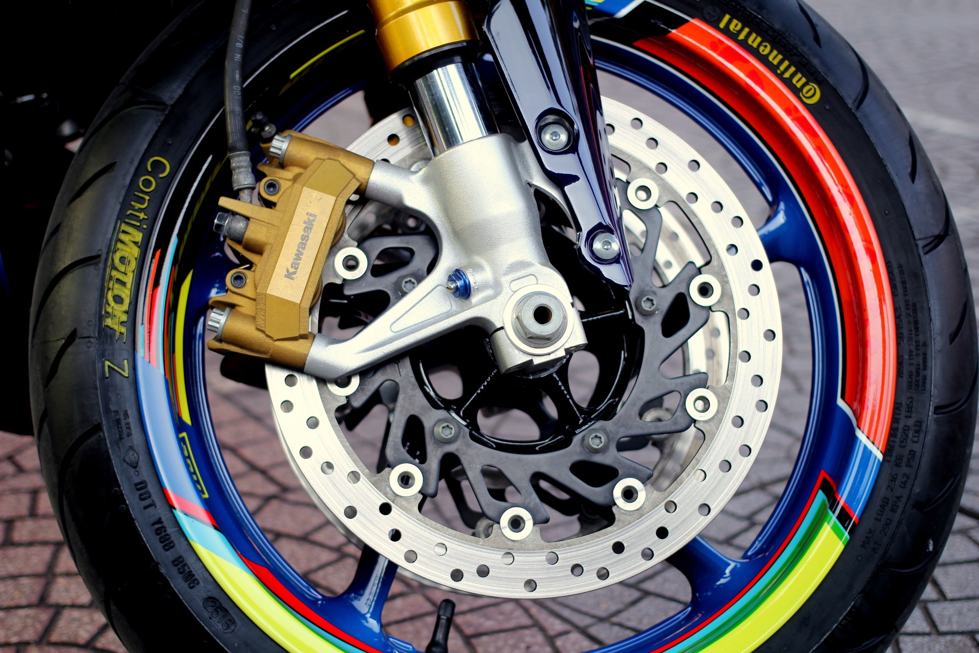 | Phía trước, Exciter được gắn cặp phanh đĩa hiệu suất cao cùng kẹp phanh trên Kawasaki Z1000. |