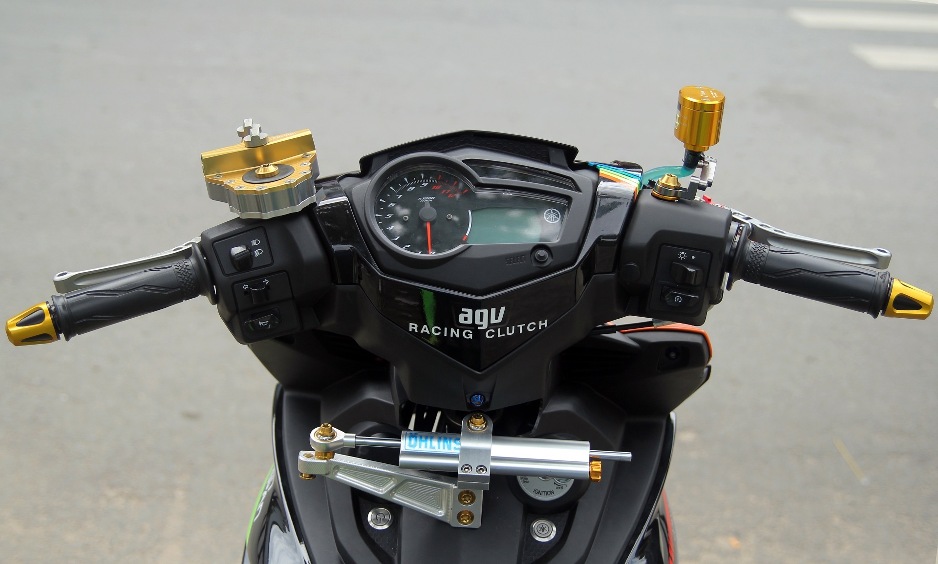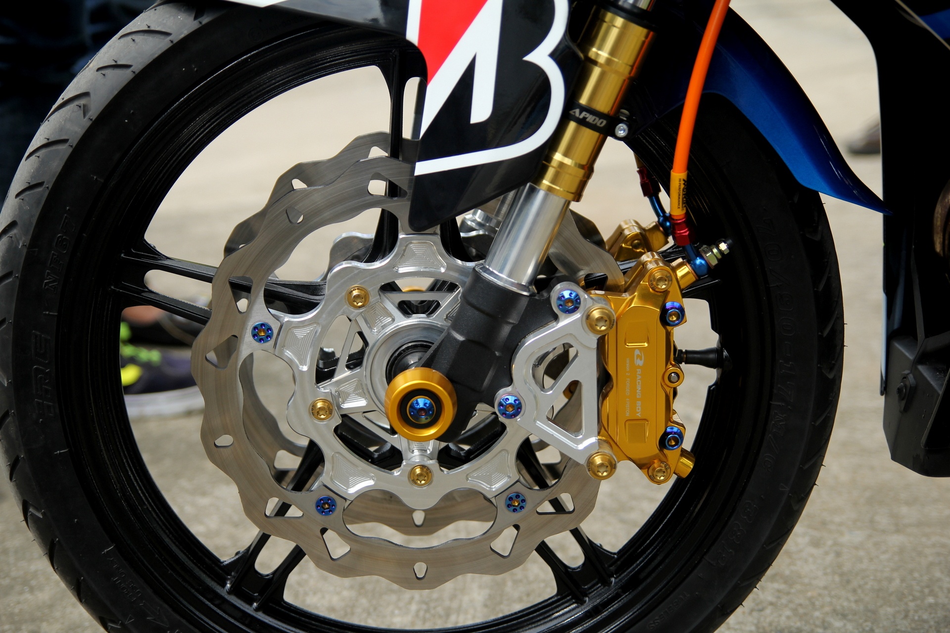 | Hệ thống phanh đĩa trước được nâng cấp lên đĩa đôi cùng kẹp phanh Racingboy. Giảm sốc trước của hãng Apido. |