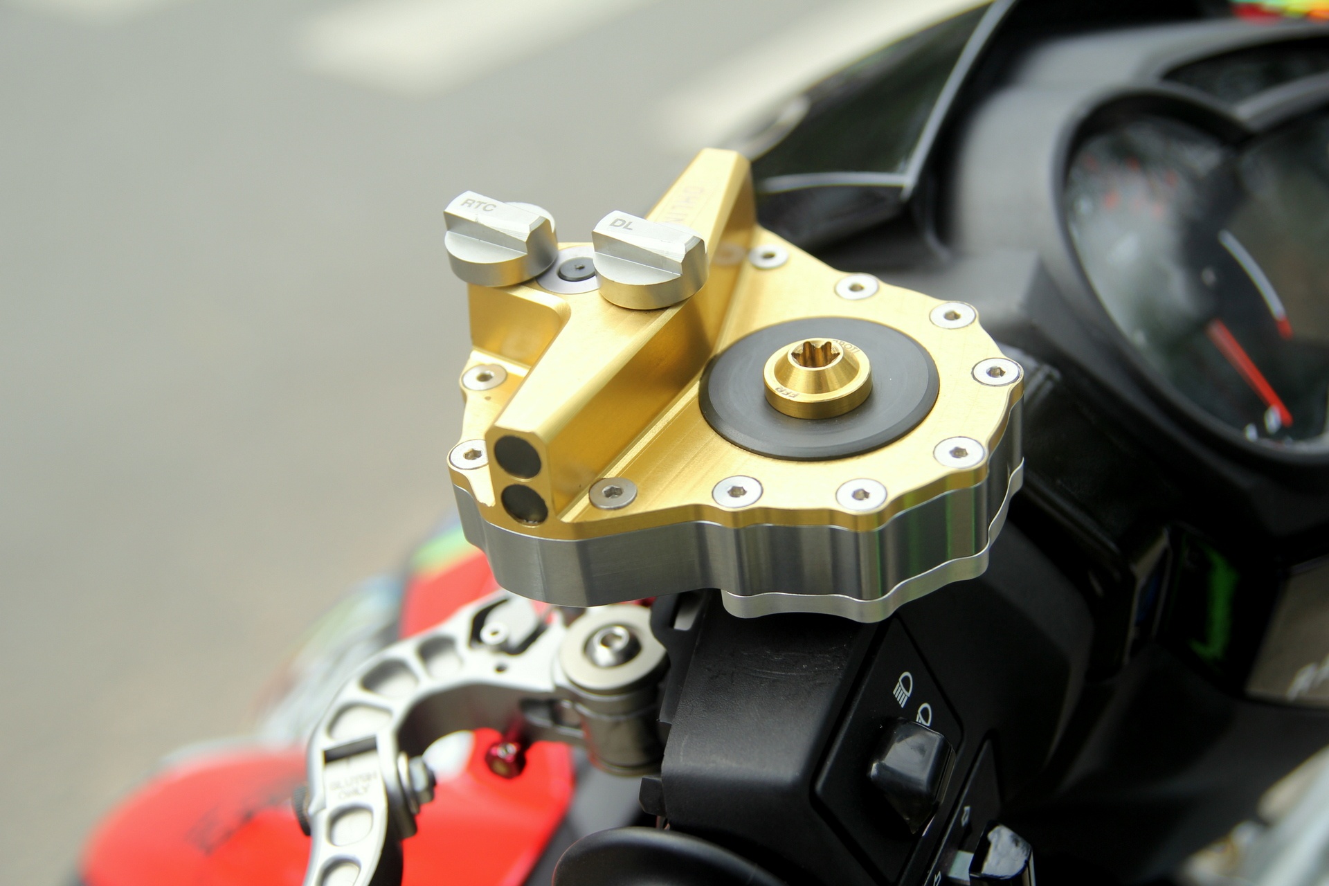 | Trợ lực Ohlins gắn ở cổ lái. |