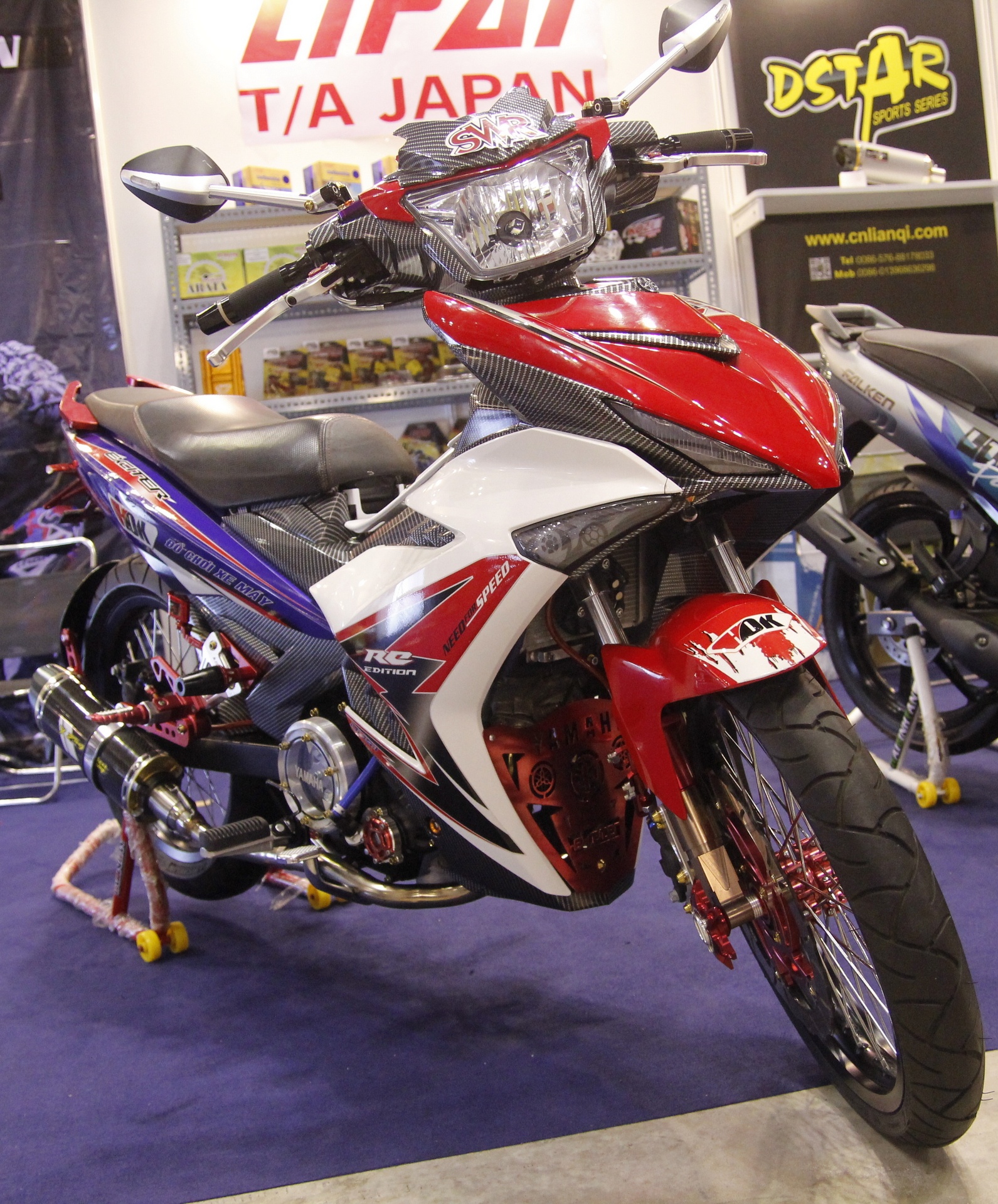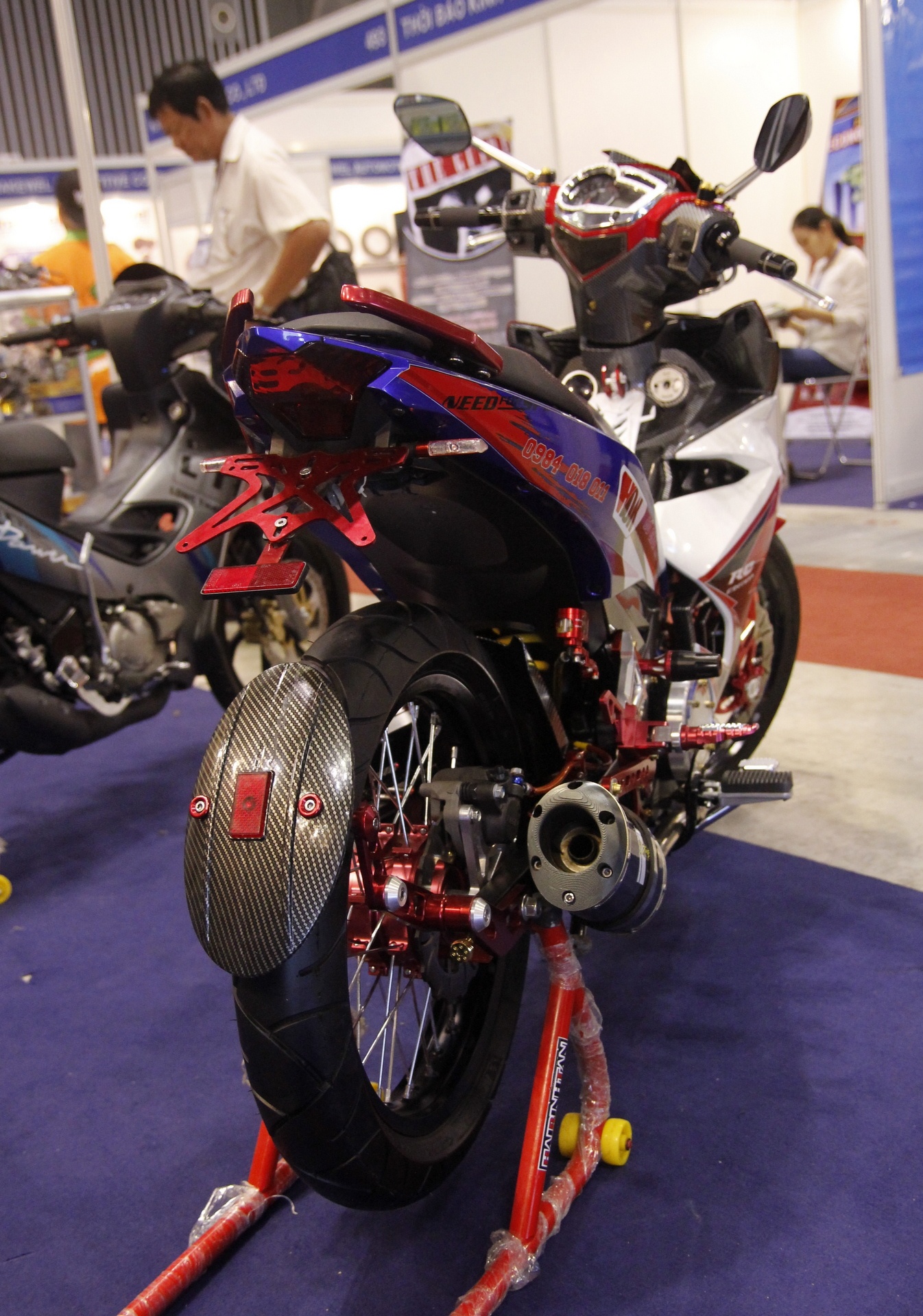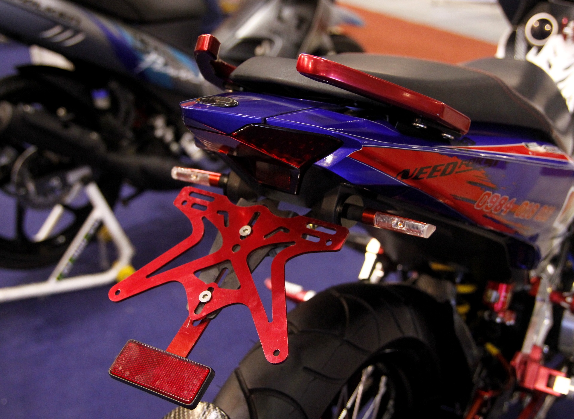 | Phần đuôi xe được tháo vè sau và lắp chắn bùn độ. Hai tông màu chủ đạo trên chiếc xe này là đỏ và trắng. |