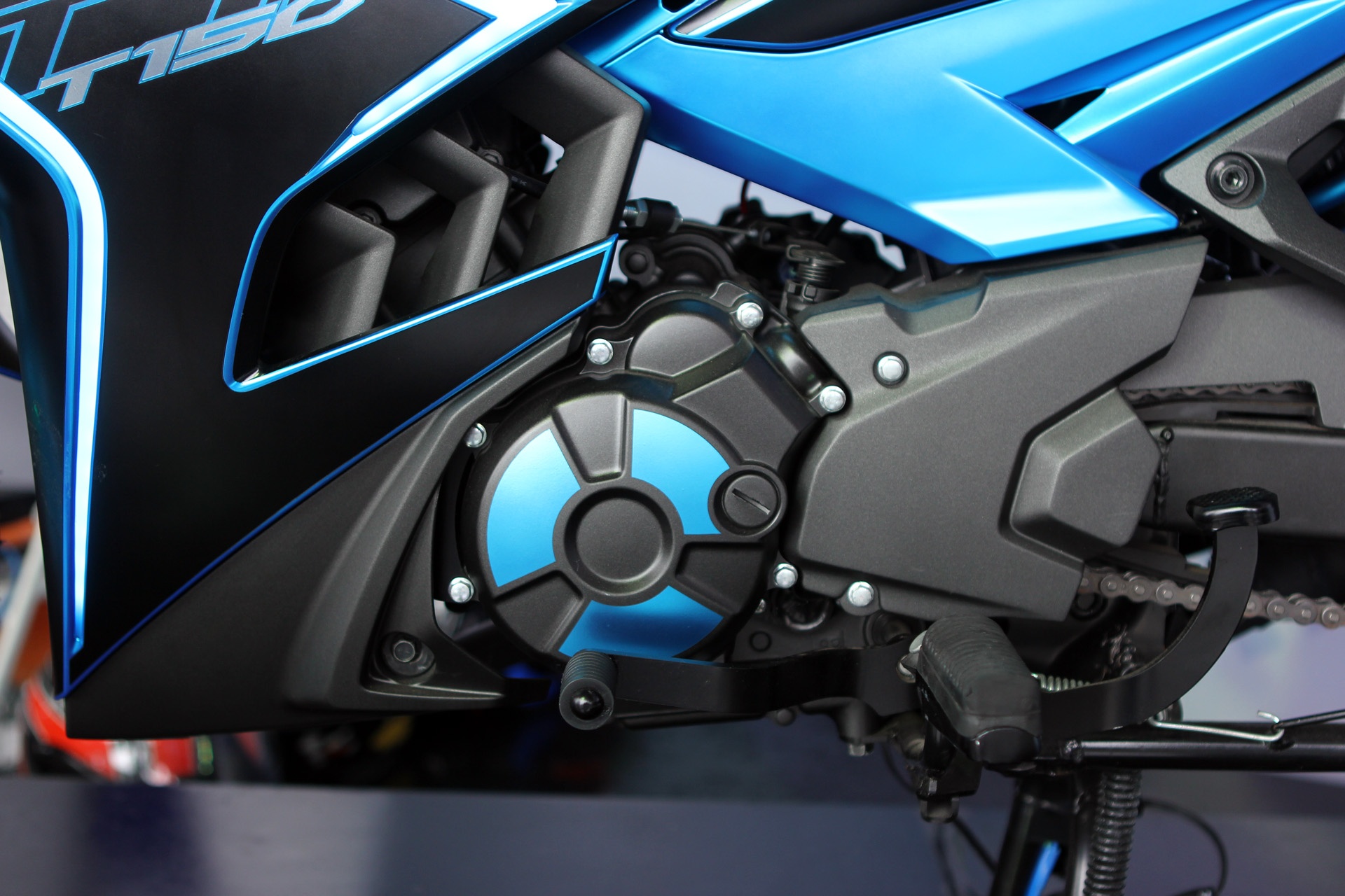 | Khối động cơ với lốc máy được sơn xanh điểm xuyết khá bắt mắt và không có sự thay đổi về thông số kỹ thuật. |