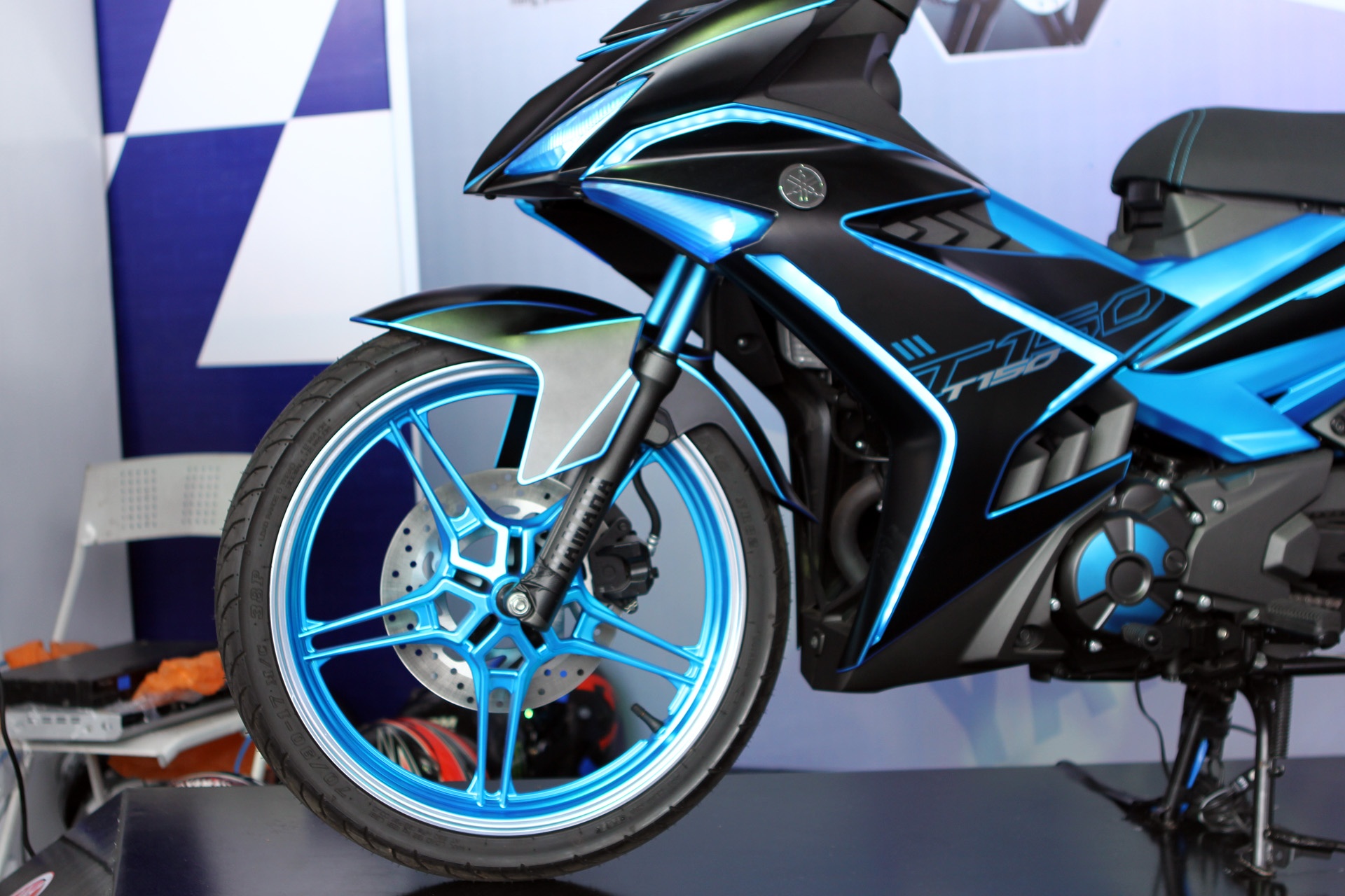 | Tại "Đại hội Exciter" đang diễn ra ở Đà Nẵng, Yamaha Việt Nam trưng bày mẫu Exciter 150 độ màu sơn đen nhám, kết hợp cùng những dải đèn LED khắp thân xe. |