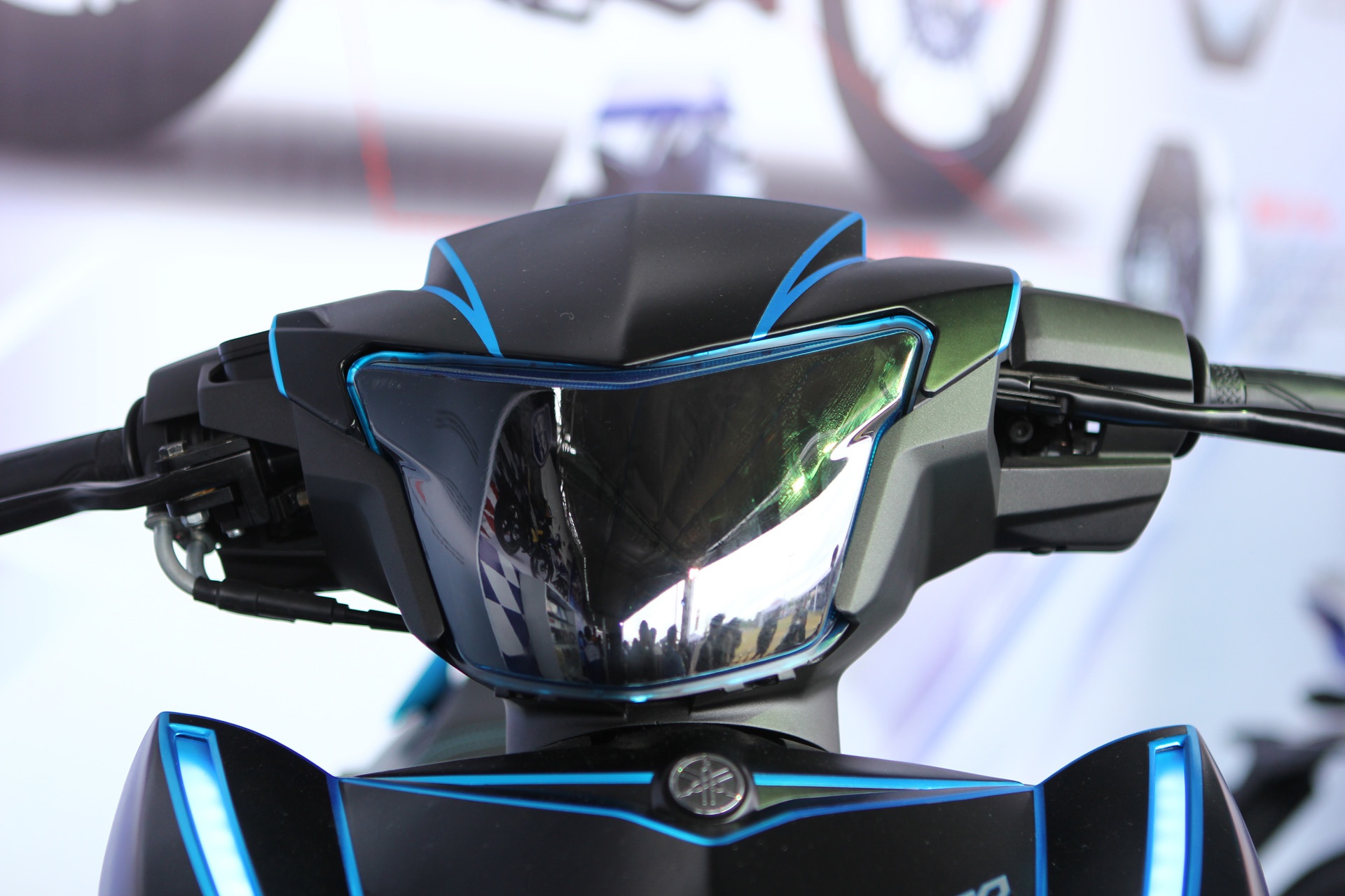 | Dàn nhựa phần đầu xe được cắt thêm hai đường trên yếm để bố trí dải đèn LED phía trong, tạo hiệu ứng bắt mắt. Đèn LED định vị và đèn xi-nhan cũng được sơn phủ màu xanh. |