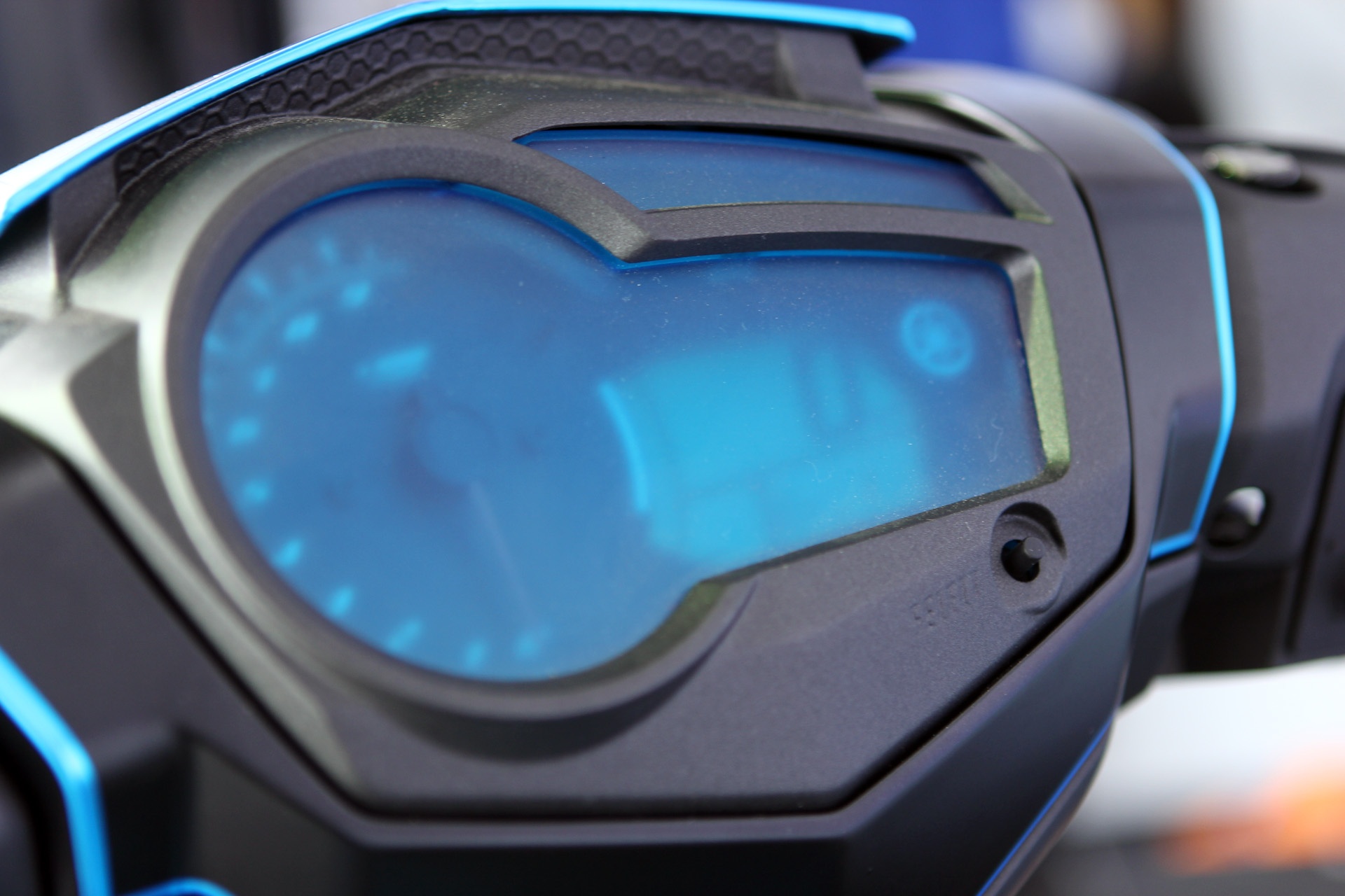 | Nắp bảo vệ đồng hồ hiện thị cũng được sơn màu xanh cùng tông màu với các chi tiết khác trên thân xe. |