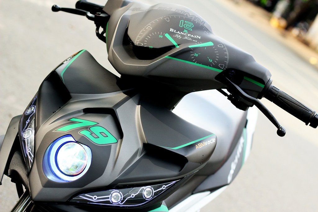 Đèn pha được thay bằng gương cầu phía dưới mặt nạ, 2 đèn demi (xi-nhan) chế LED tỉ mỉ, độc đáo. |