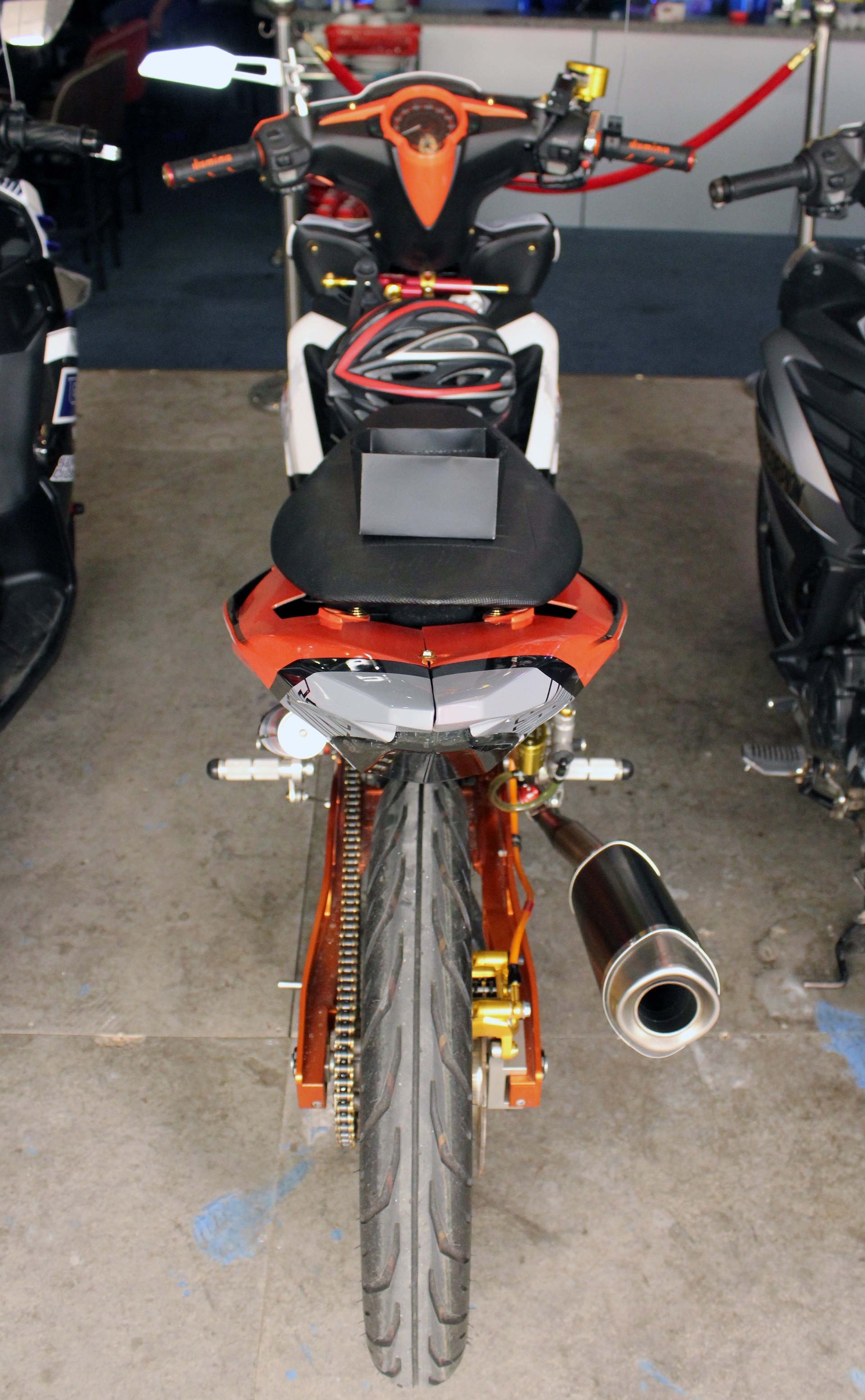 | Dàn ngoài được chế mũ (độ thân vỏ) và lên full (đầy đủ) đồ chơi. Chiếc xe này thuộc sở hữu của một người chơi xe ở quận 1, TP.HCM. Thời gian độ chiếc xe hết khoảng 2 tuần. Theo chủ nhân của chiếc xe, động cơ đã được lên trái 62 (piston đường kính 62 mm). Ống xả hiệu Arrow. |
